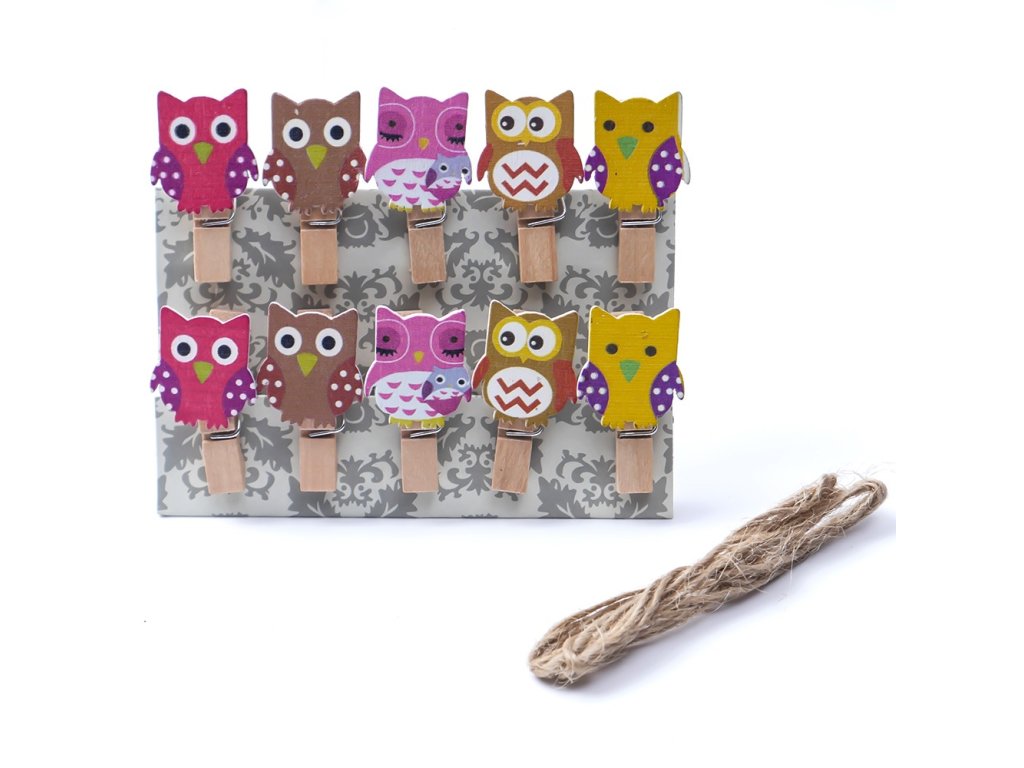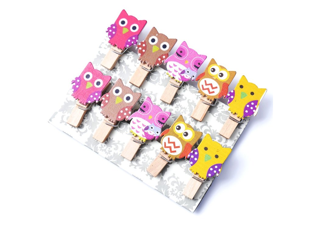 Dřevěné dekorační kolíčky se sovou pro různé dekorace a kreativní tvoření. Veselé kolíčky můžete použít na uzavření sáčků, držák na recepty, na vzkazy, jmenovky, přáníčka.