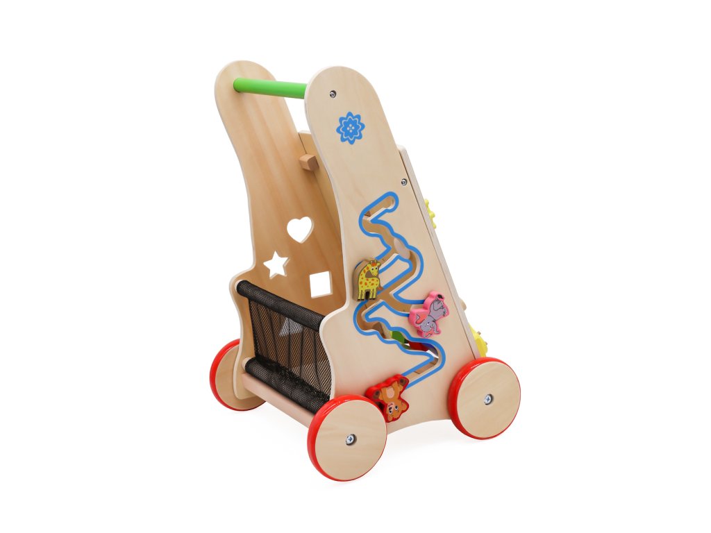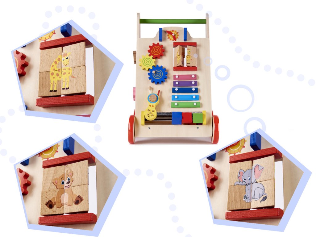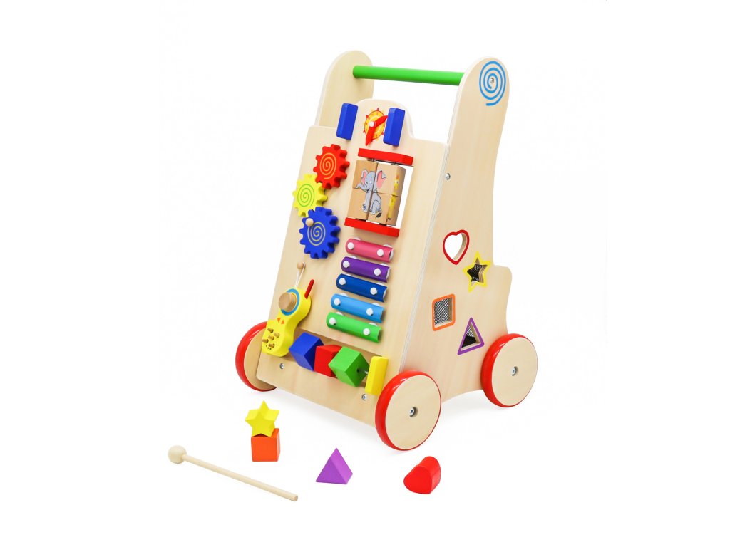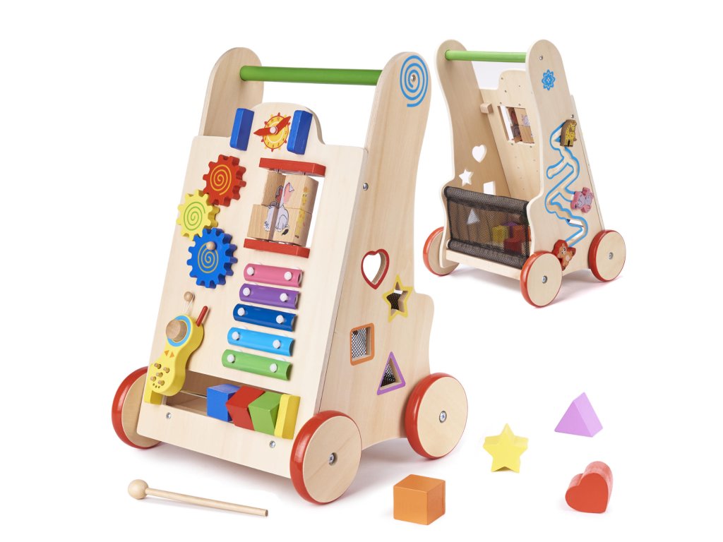 Dřevěné chodítko pro děti je vynikající způsob, jak se naučit chodit. S jeho pomocí bude důležitá vývojová fáze každého batolete, kterou jsou první krůčky, mnohem snazší. Hračka dětem usnadní udržení rovnováhy a zároveň poskytne zábavu díky interaktivním prvkům, jako jsou: