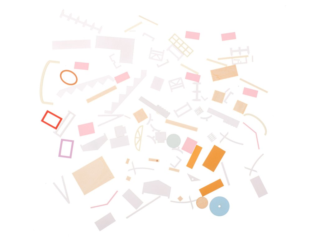 Sada obsahuje potřebné příslušenství pro snadnou montáž: lepidlo, pravítko, nůžky, pinzetu, nůž, šroubovák a podrobný návod k montáži. Hotový model měří 12,5 x 19,5 x 15 cm a představuje originální dekoraci.