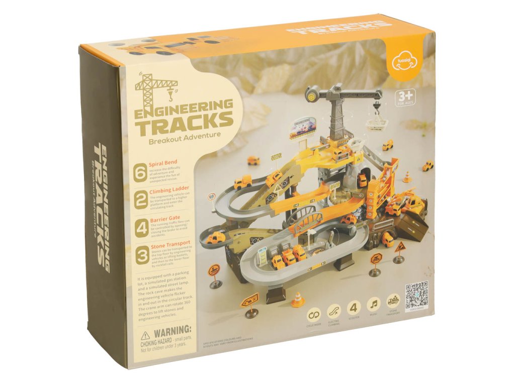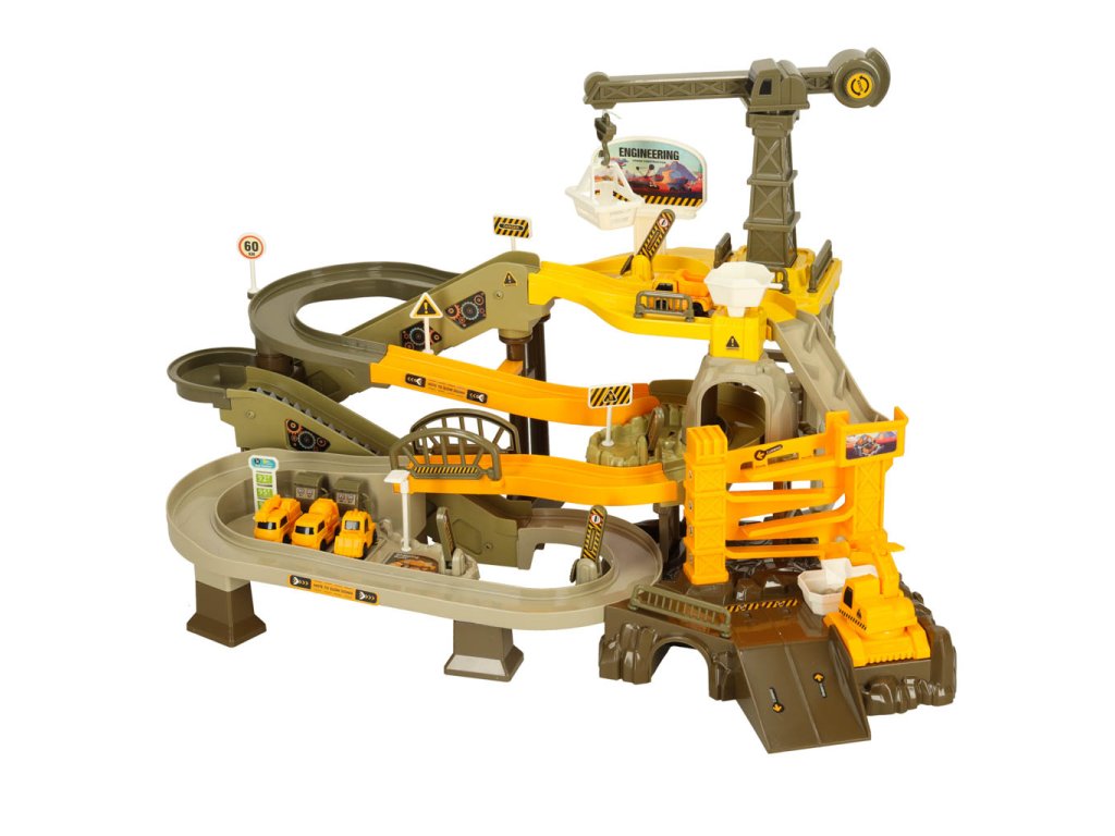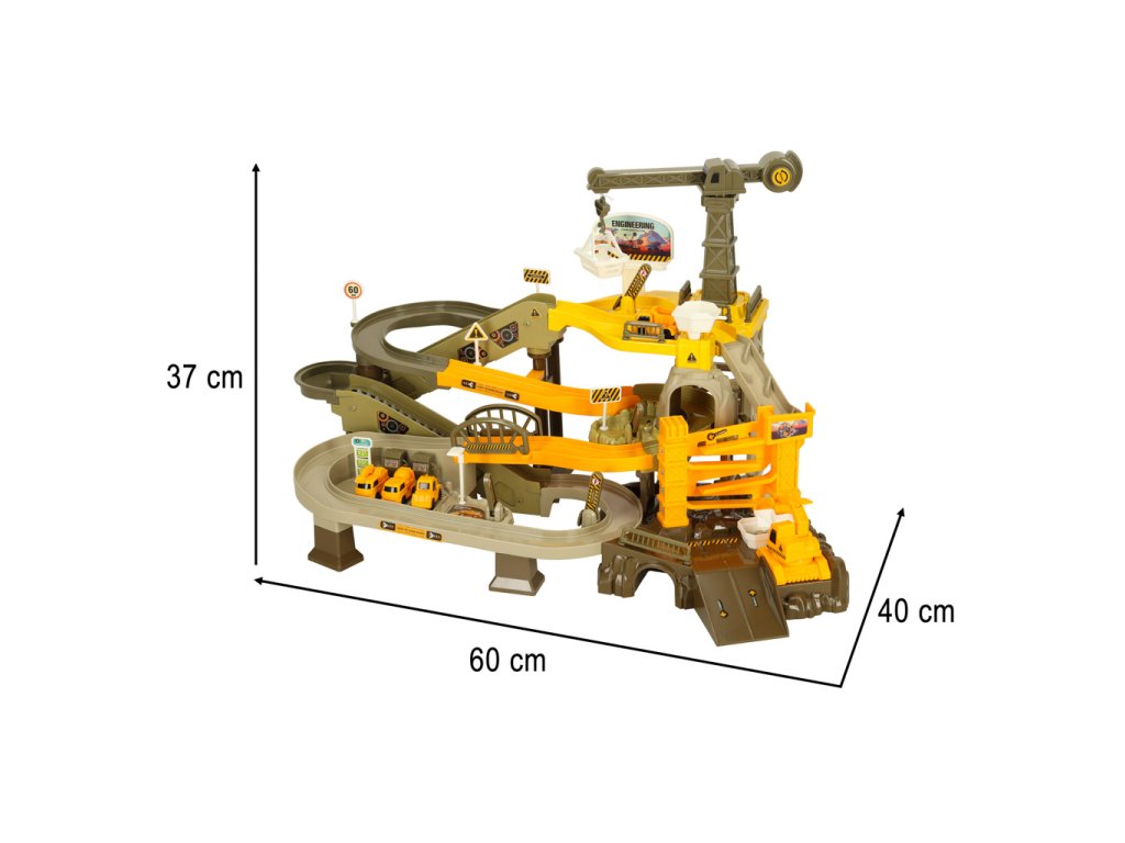 Víceúrovňová dráha, která děti vtáhne do pohlcujícího světa her. Hračka připomíná staveniště, kde autíčka přepravují kameny zespodu až na vrchol dráhy. Autíčka se pohybují samostatně díky elektrickým prvkům, které je uvádějí do pohybu. Dráha je napájena třemi AA bateriemi (nejsou součástí balení). Hračka podporuje rozvoj drobné motoriky a pochopení vztahů příčiny a následku.