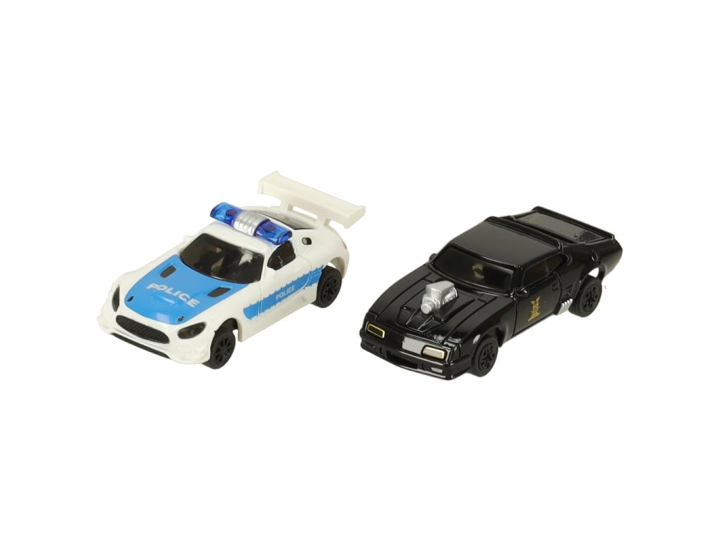 Součástí jsou dvě autíčka – černý sportovní vůz a policejní auto – ovládaná pomocí dvou joysticků, které umožňují regulovat rychlost a zrychlení.