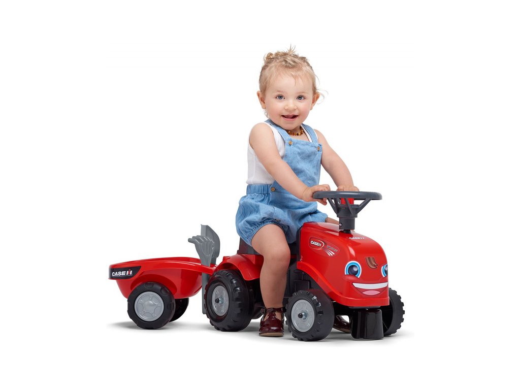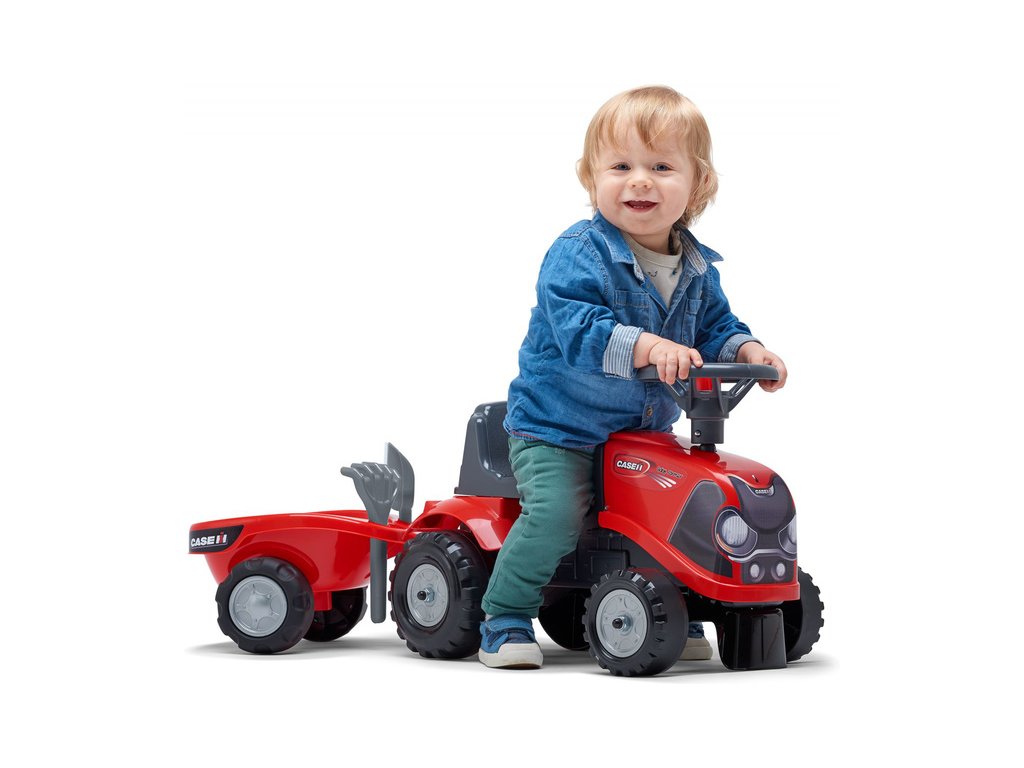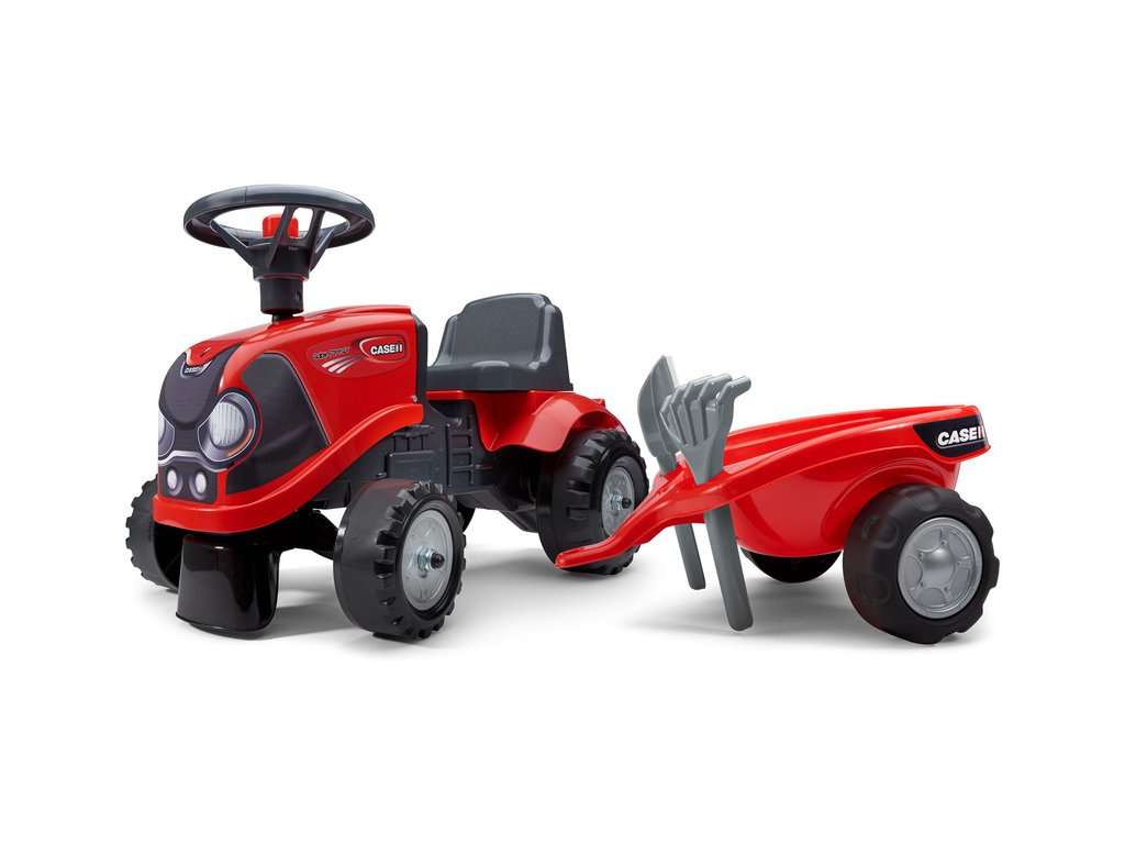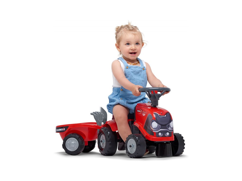 Dětské odrážedlo Falk Baby Case CE IH s vlečkou, lopatkou a hráběmi. Kopie traktoru z plastu pro děti. Odrážedlo je vyrobené ve Francii z vysoce kvalitního odolného plastu s ohledem na bezpečnost dětí. Klakson na volantu. Pro děti od 1 do 3 let.