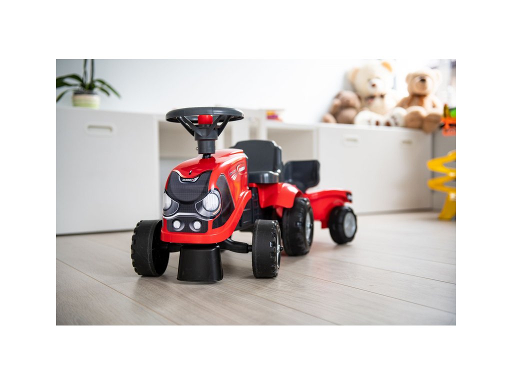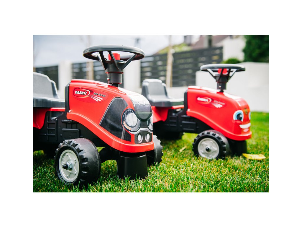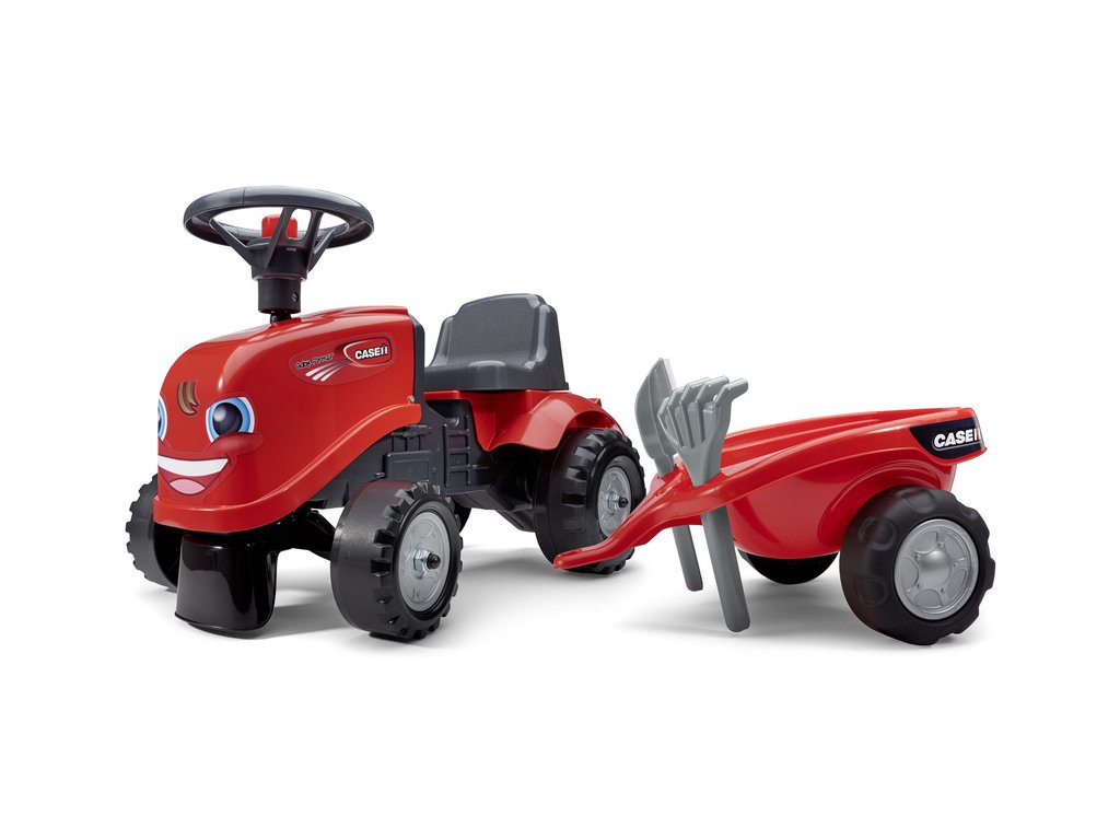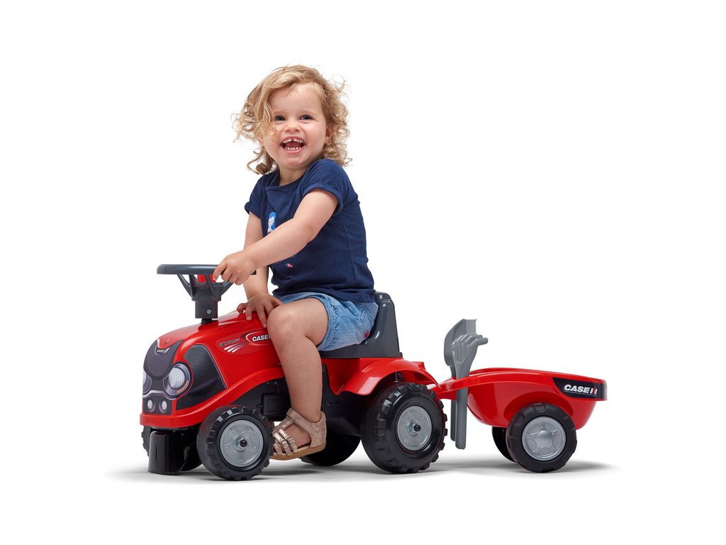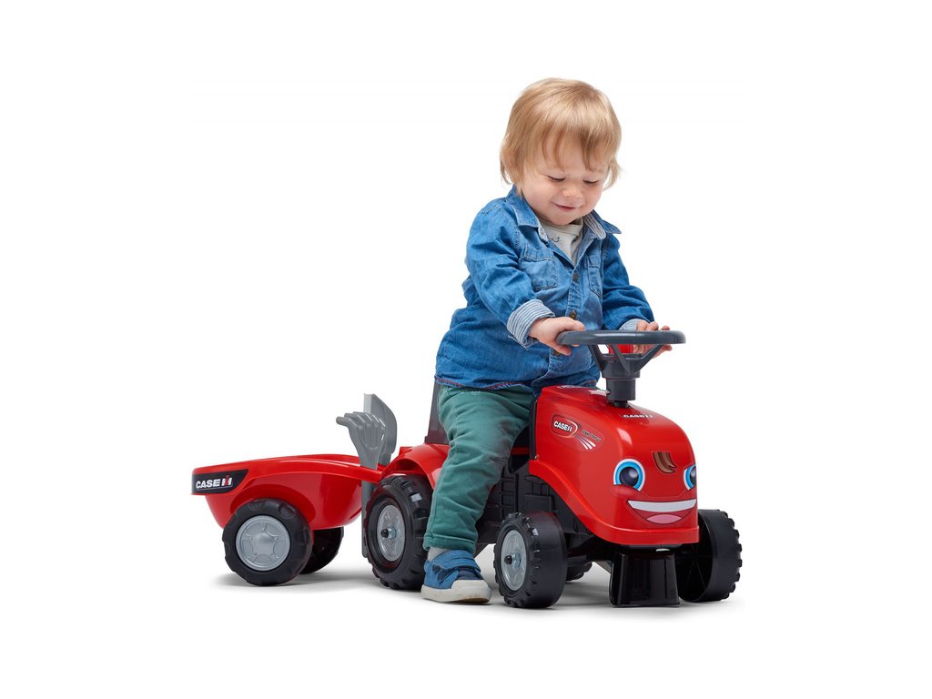 Dětské odrážedlo Falk Baby Case CE IH s vlečkou, lopatkou a hráběmi. Kopie traktoru z plastu pro děti. Odrážedlo je vyrobené ve Francii z vysoce kvalitního odolného plastu s ohledem na bezpečnost dětí. Klakson na volantu. Pro děti od 1 do 3 let.