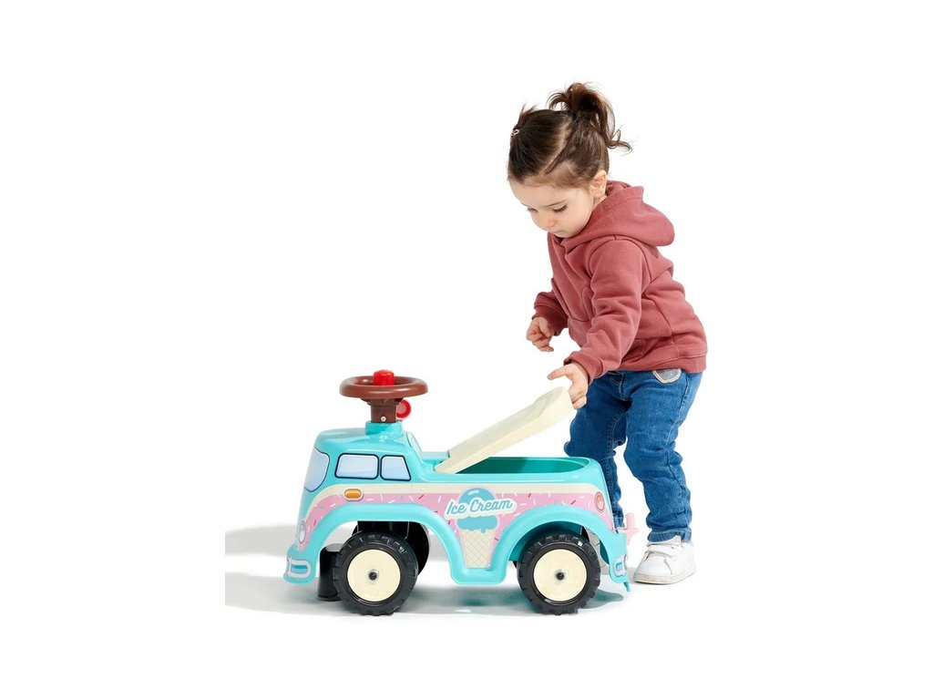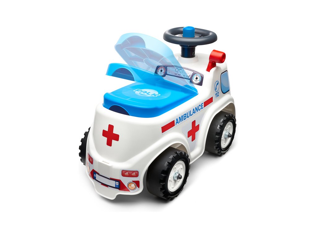 Dětské odrážedlo od francouzského výrobce FALK. Vyrobeno z vysoce kvalitního a odolného plastu s ohledem na bezpečnost dětí. Otevírací sedátko a klakson na volantu. Pro děti od 1 roku.