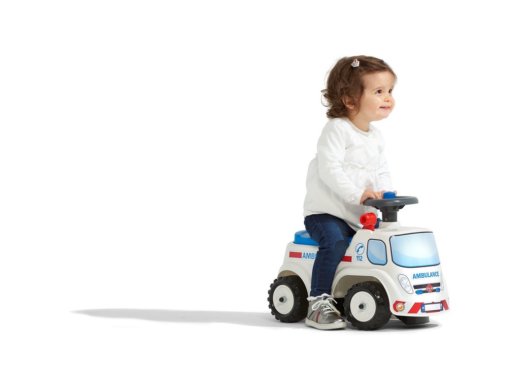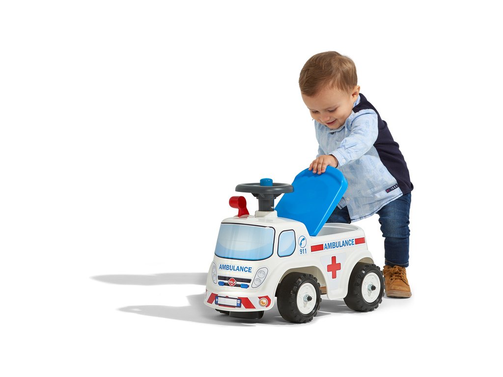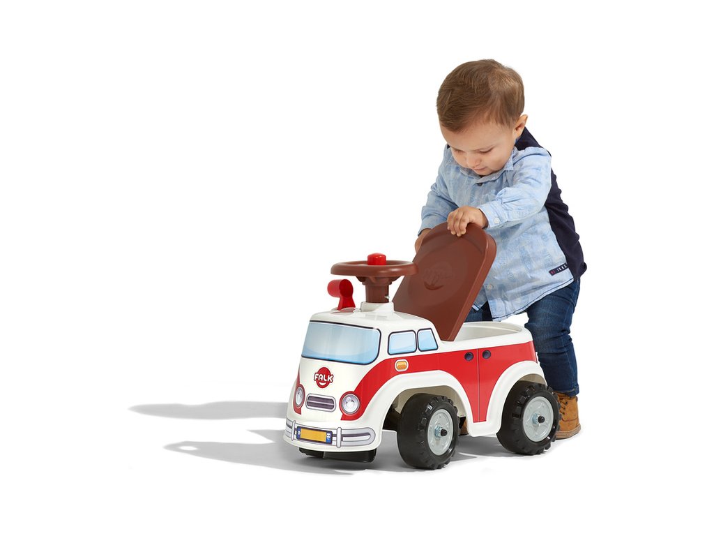 Dětské odrážedlo od francouzského výrobce FALK. Vyrobeno z vysoce kvalitního a odolného plastu s ohledem na bezpečnost dětí. Otevírací sedátko a klakson na volantu. Pro děti od 1 roku.