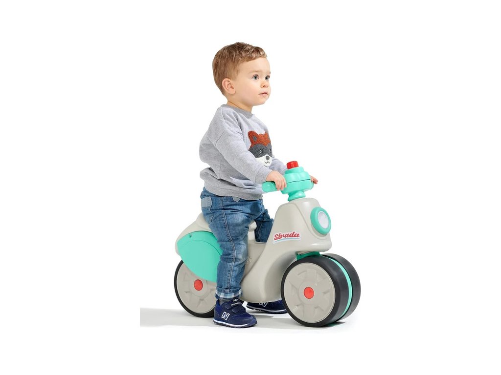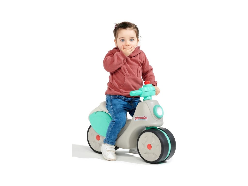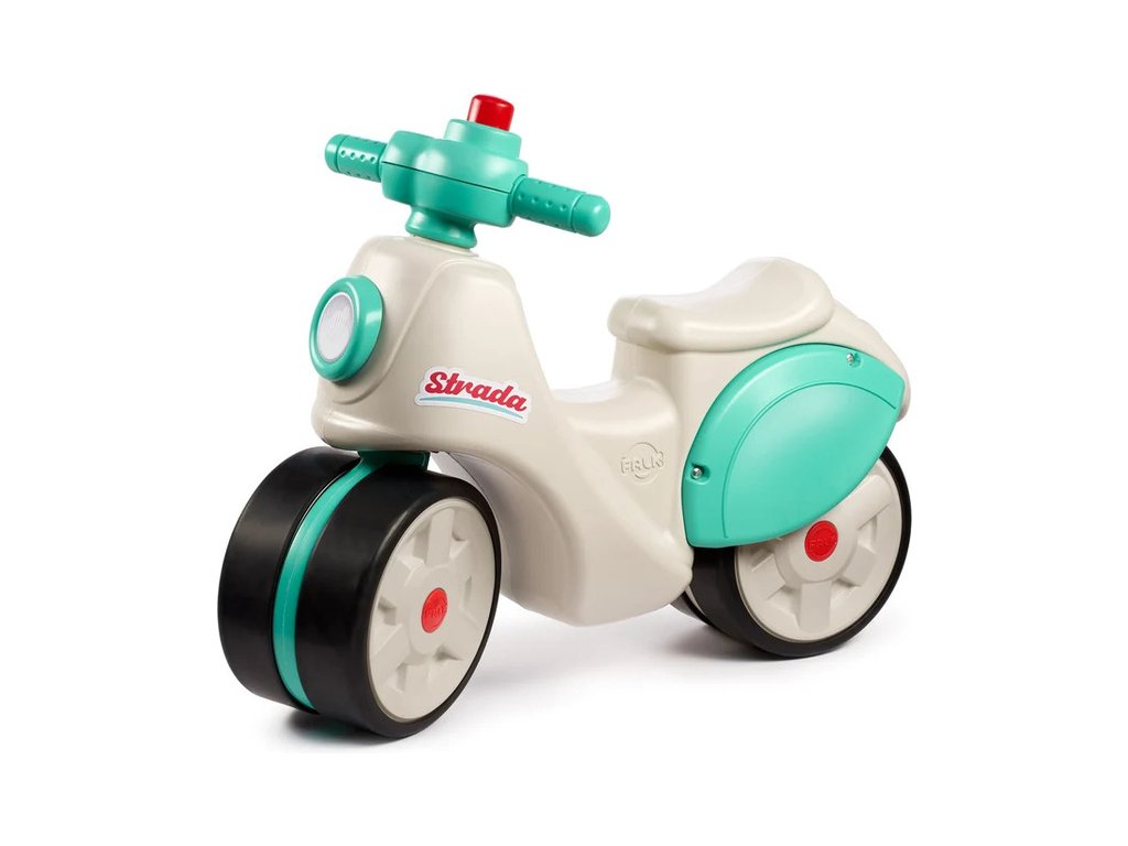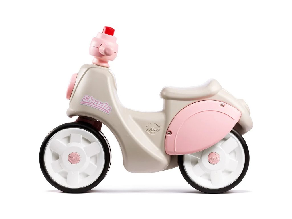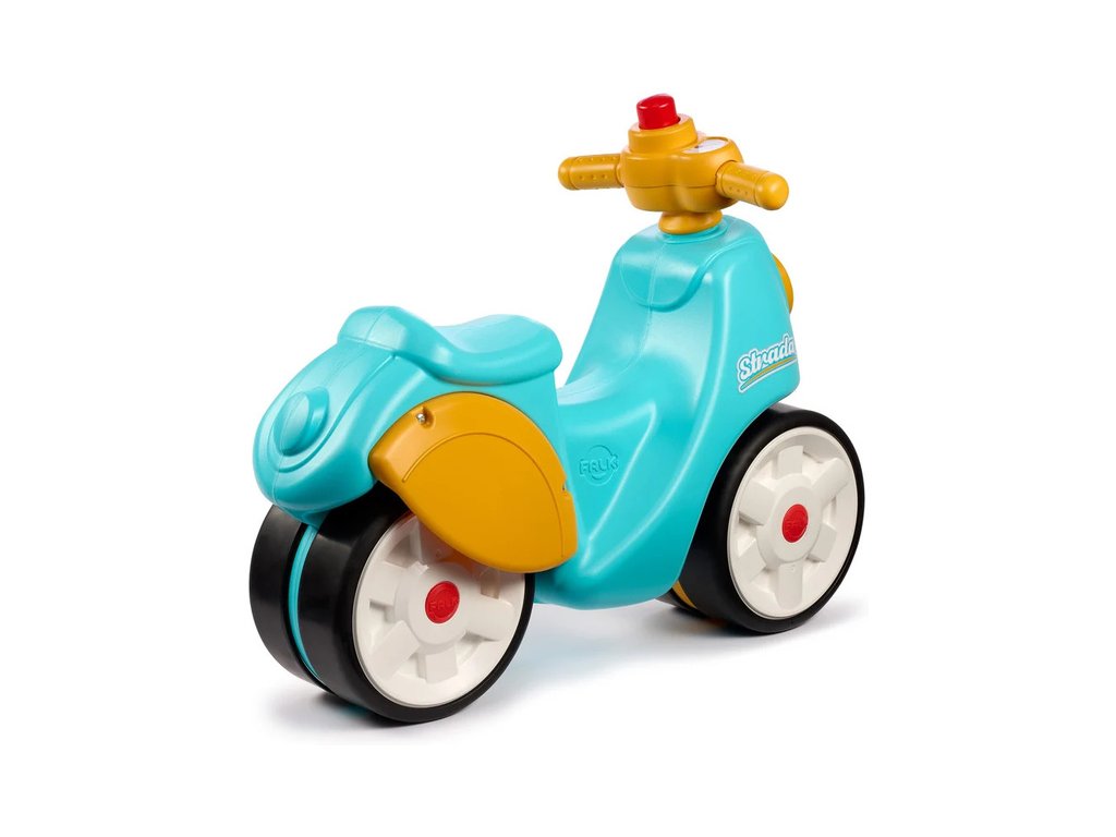 Dětské odrážedlo FALK Strada - ve tvaru stylové retro skútru. Vyrobeno z vysoce kvalitního odolného plastu s ohledem na bezpečnost dětí. Díky elastomernímu povlaku je odrážedlo odolnější vůči poškrábání. Široká kola pro stabilitu. Klakson na řídítkách. Pro děti od 1 do 3 let.