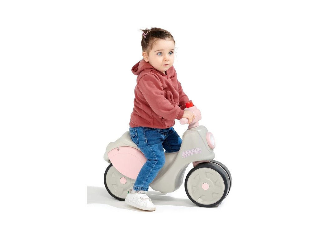 Dětské odrážedlo Strada, od francouzského výrobce FALK - ve tvaru stylové retro skútru. Vyrobeno z vysoce kvalitního odolného plastu s ohledem na bezpečnost dětí. Díky elastomernímu povlaku je odrážedlo odolnější vůči poškrábání. Široká kola pro stabilitu a postupné rozvíjení rovnováhy. Funkční řídítka pomáhání s rozvinutím jízdních dovedností. Funkční klakson na řídítkách. Pro děti od 1 do 3 let.