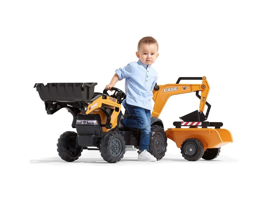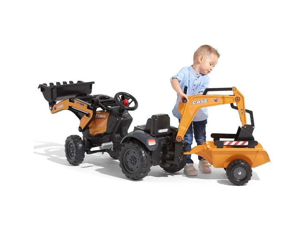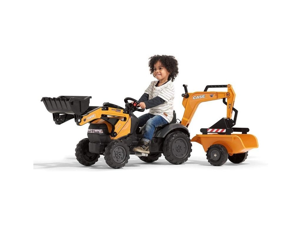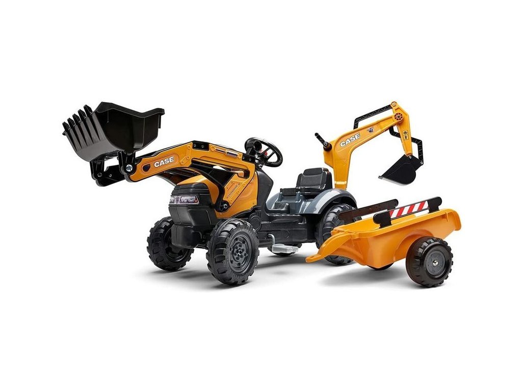 Šlapací traktor Case IH Beckhoe s nakladačem, rypadlem a vlečkou, od Francouzského výrobce FALK. Realistická kopie známe značky traktoru z kvalitního odolného plastu s ohledem na zdraví dětí. Vhodné pro děti od 2 do 5 let.