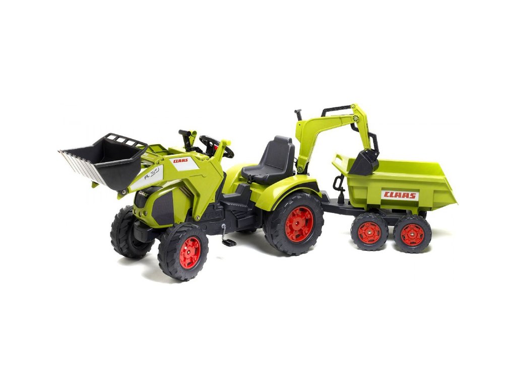 FALK - Šlapací traktor Claas Axos s nakladačem, rypadlem a vlečkou