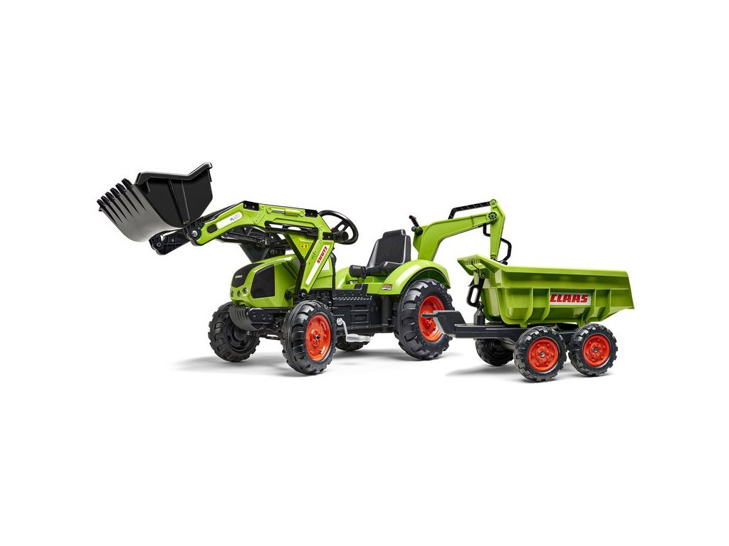FALK - Šlapací traktor Claas Backhoe s nakladačem, rypadlem a Maxi vlečkou