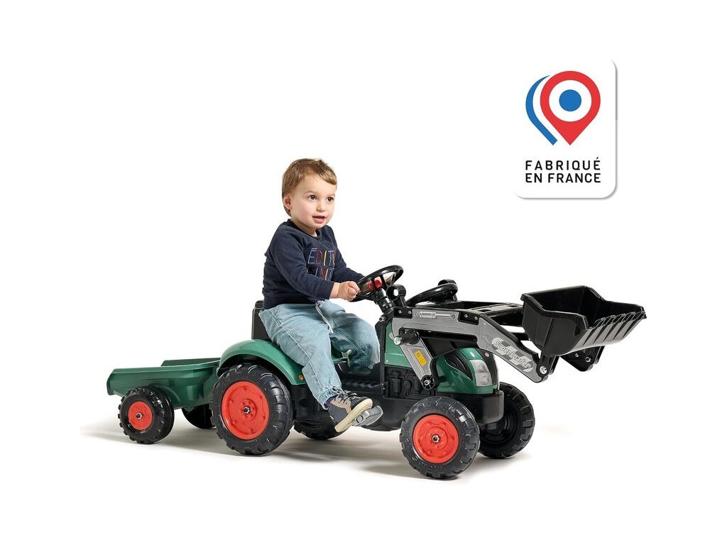 FALK - Šlapací traktor Farm Lander s předním nakladačem, odpojitelnou vlečkou, funkčním klaksonem na volantu a dalšími úžasnými funkcemi pro nekonečné dětské hry. Vyrobeno ve Francii. Určeno pro děti od 2 do 5 let.