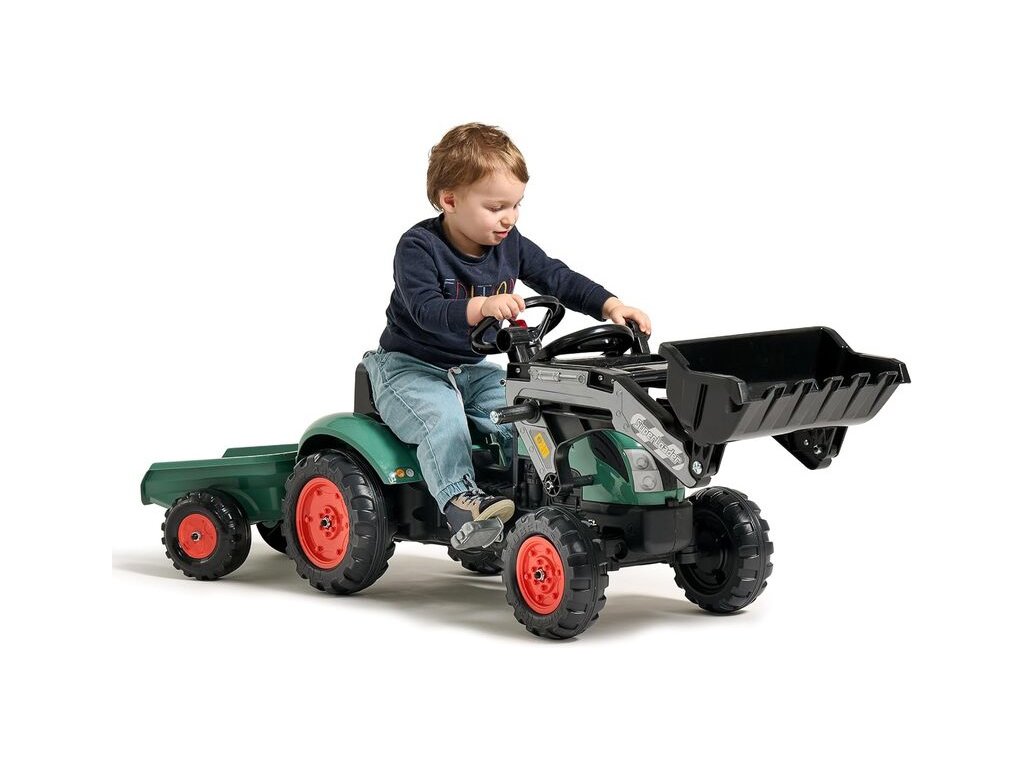 Realisticky zpracovaný dětský šlapací traktor pro děti které si sním užijí hodiny zábavy. Na odpojitelné vlečce lze převést co jen děti napadne a svůj příjezd oznámí klaksonem na volantu. Dále je dětský traktor vybaven parádním předním nakladačem. Traktor je vyroben z odolného plastu a všechny části jsou navrženy tak, aby přestály dětské hry.