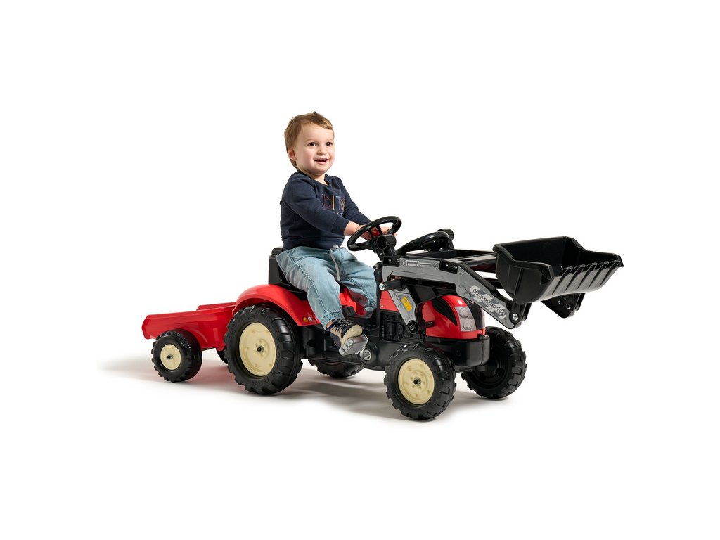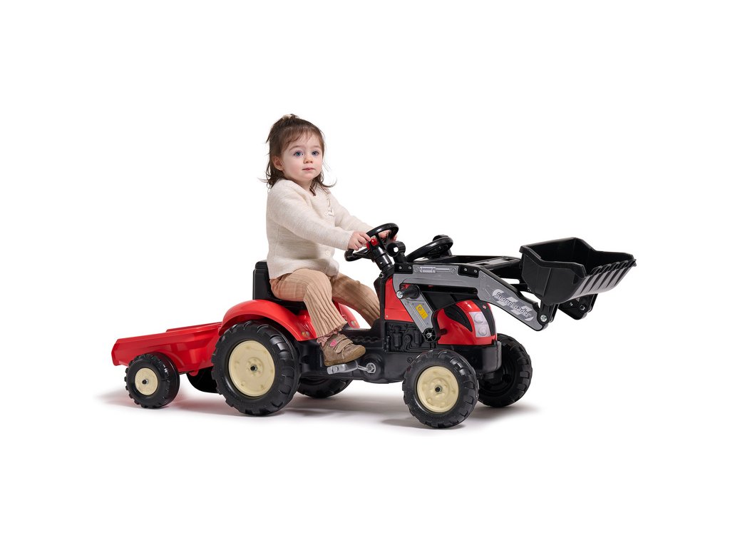 Realisticky zpracovaný dětský šlapací traktor pro děti které si sním užijí hodiny zábavy. Na odpojitelné vlečce lze převést co jen děti napadne a svůj příjezd oznámí klaksonem na volantu. Dále je dětský traktor vybaven parádním předním nakladačem. Traktor je vyroben z odolného plastu a všechny části jsou navrženy tak, aby přestály dětské hry.