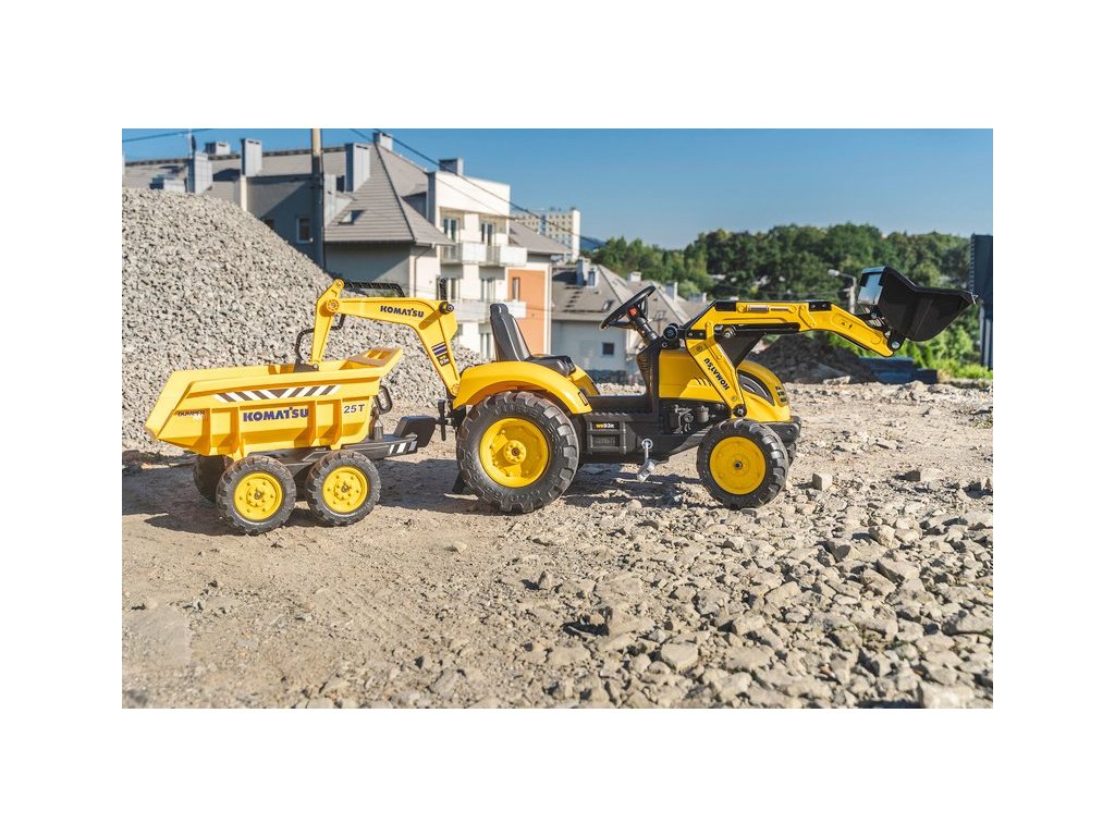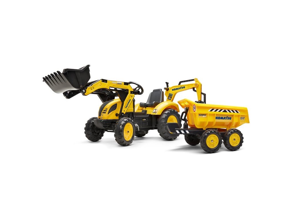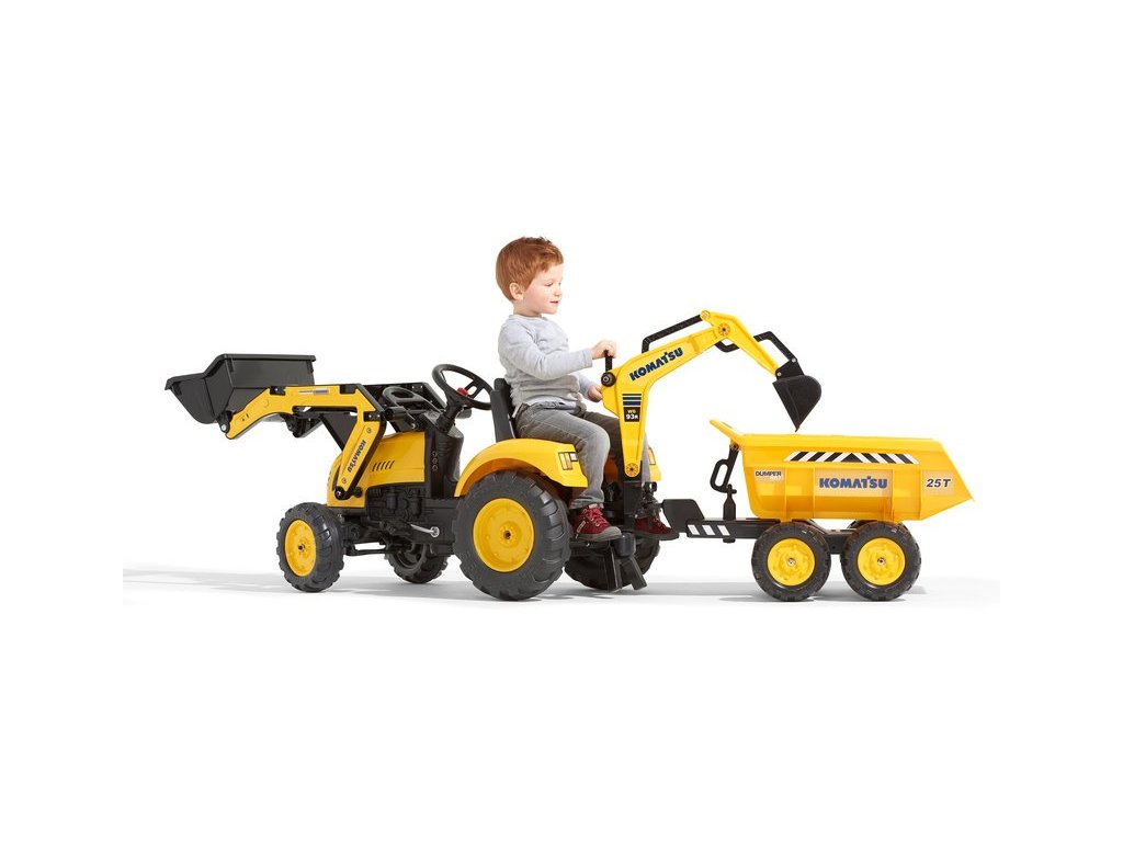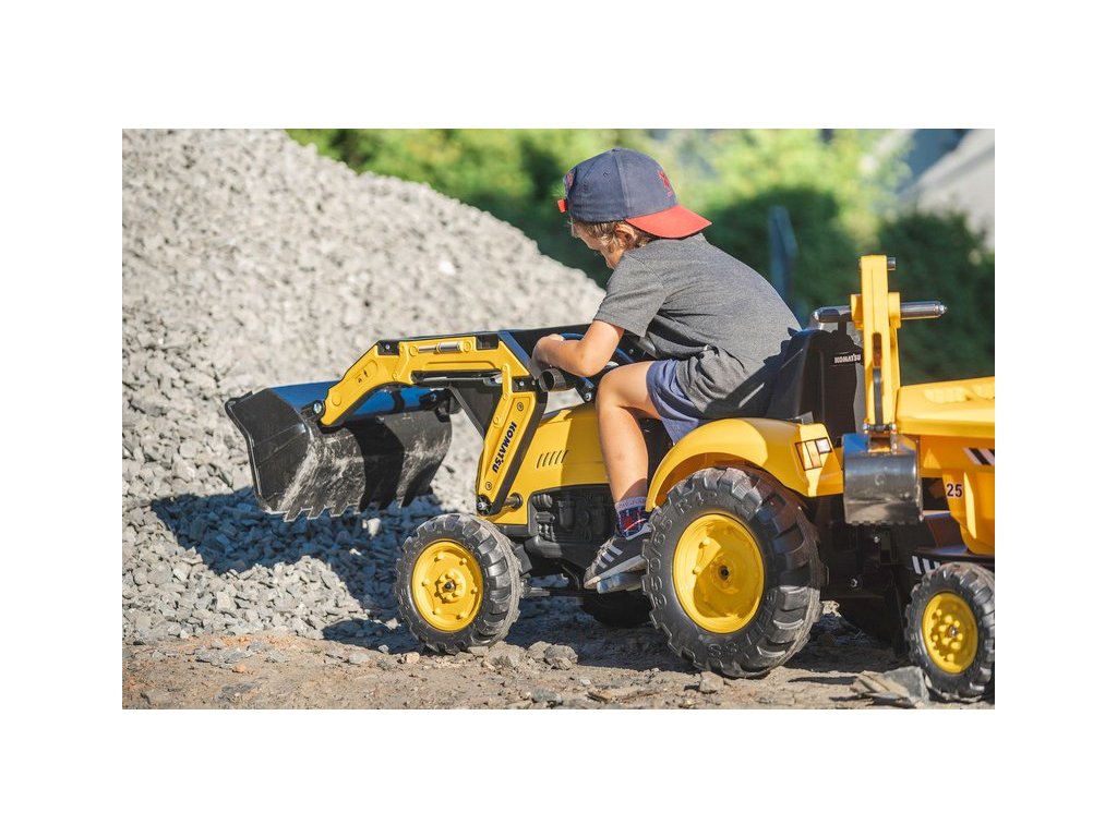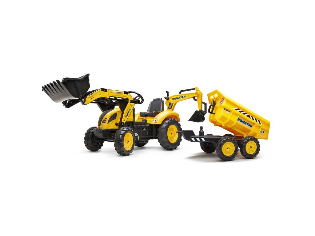 FALK - Šlapací traktor Komatsu s nakladačem, rypadlem a výklopnou vlečkou, je replikou skutečného traktoru.