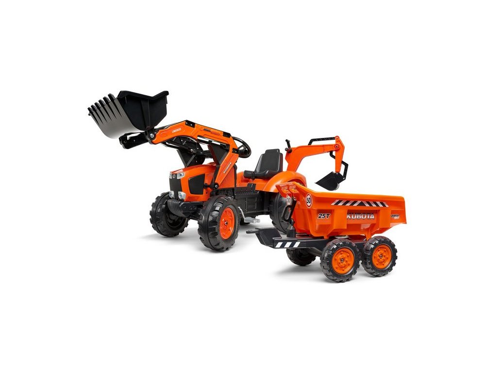 FALK - Šlapací traktor Kubota s nakladačem, rypadlem a Maxi vlečkou