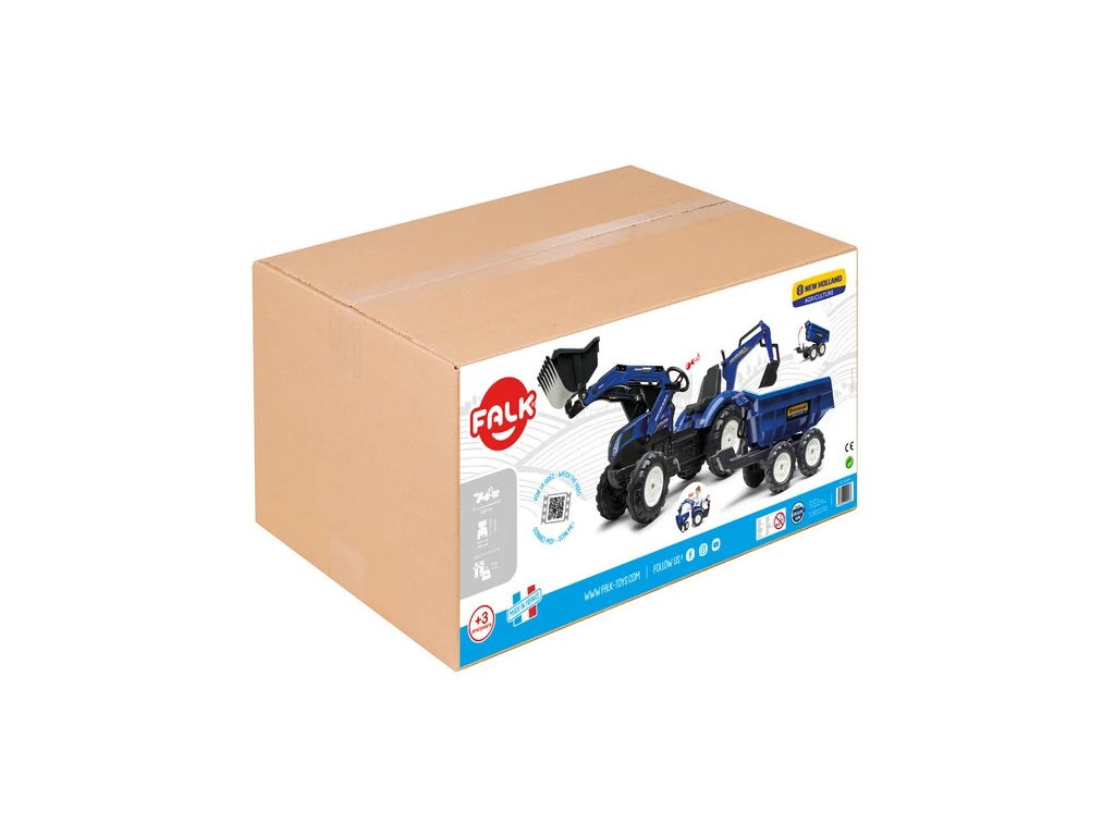Šlapací traktor New Holland T8 s nakladačem, rypadlem a maxi vlečkou, od výrobce FALK, je replika skutečného traktoru. Vysoce kvalitní provedení, snadné ovládání, stabilita a mnoho mechanických funkcí. Vhodné pro děti od 3 do 7 let.