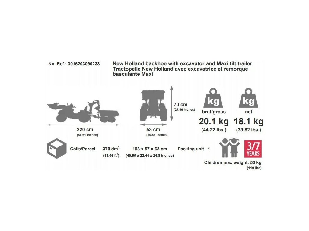Díky mechanickému rypadlu naberete vše co potřebujete a vyhloubíte jakoukoliv díru. Rypadlo má důmyslný ovládací systém, kterým ho můžete ovládat z jednoho místa. Promyšlená konstrukce dětského traktoru zajišťuje snadné ovládaní i těžšího nákladu.