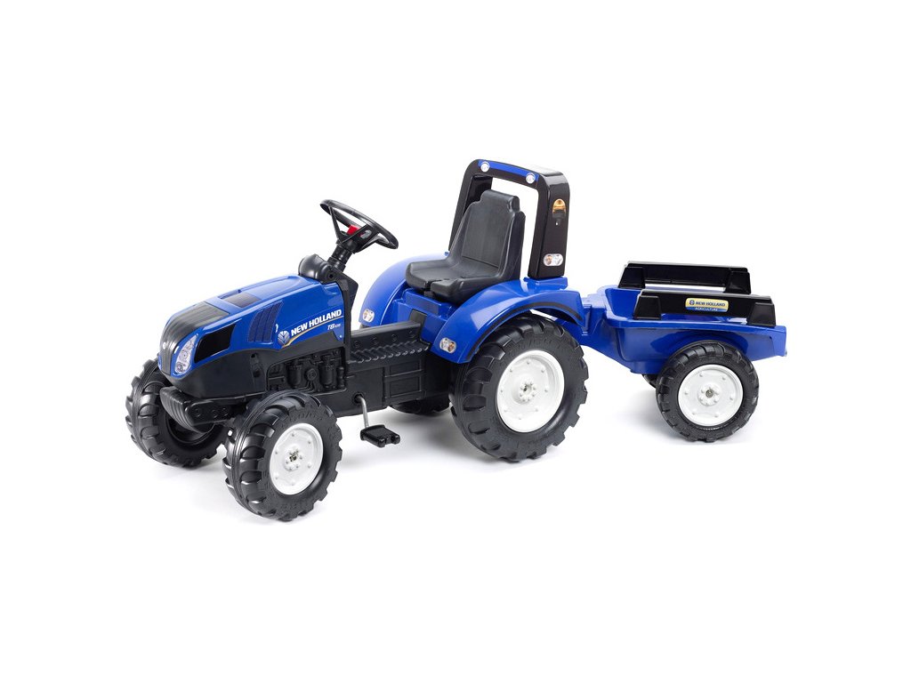 Šlapací traktor New Holland T8 s vlečkou, od Francouzské výrobce FALK, který se zaměřuje především na kvalitu a bezpečnost svých výrobků. Součástí balení je odpojitelná vlečka pro přepravu nákladu malého traktoristy.