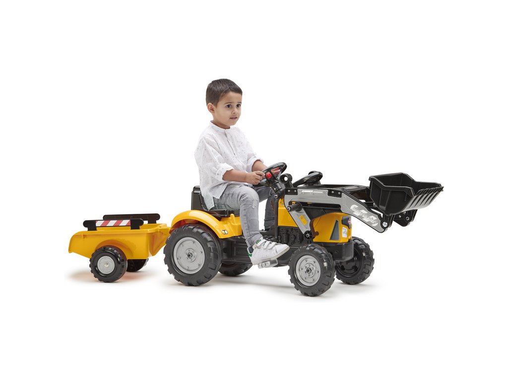 Realisticky zpracovaný dětský šlapací traktor pro děti které si sním užijí hodiny zábavy. Na odpojitelné vlečce lze převést co jen děti napadne a svůj příjezd oznámí klaksonem na volantu. Kapotu lze vyklopit a děti můžou provádět opravy. Dále je dětský traktor vybaven parádním předním nakladačem. Traktor je vyroben z odolného plastu a všechny části jsou navrženy tak, aby přestály dětské hry.