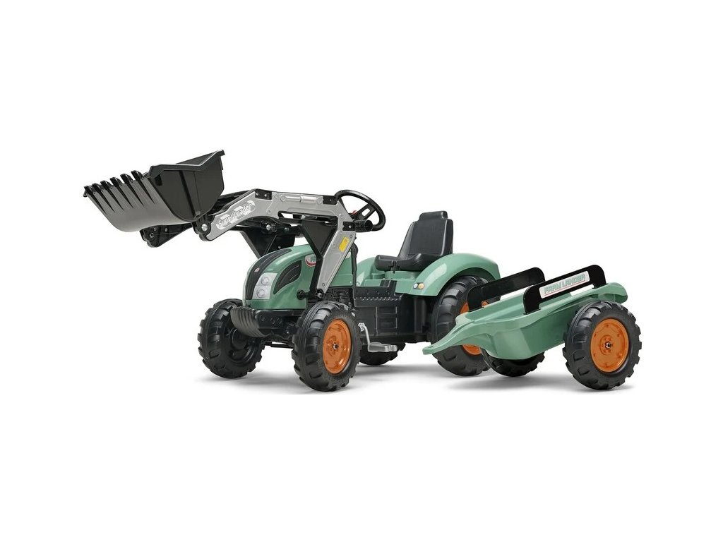 FALK - Šlapací traktor Super Loader s nakladačem a vlečkou zelený