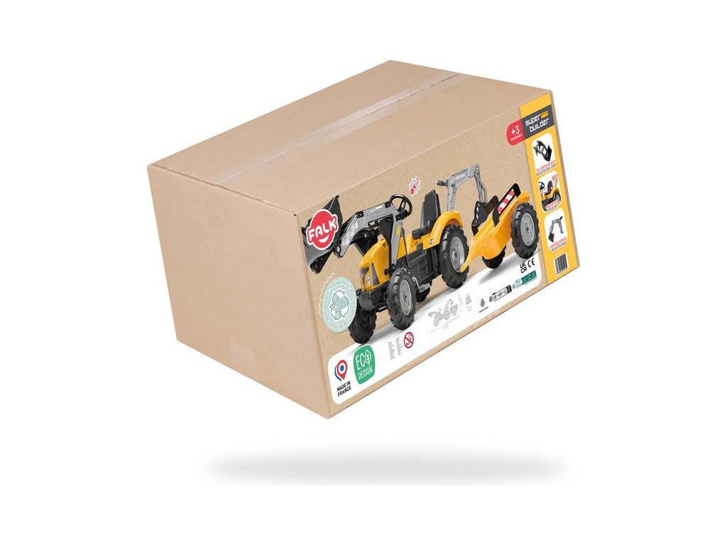 FALK - Šlapací traktor SuperBuilder s nakladačem, rypadlem a vlečkou