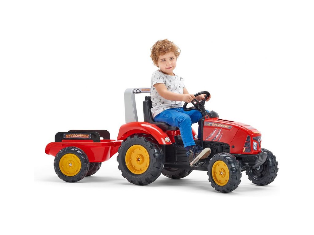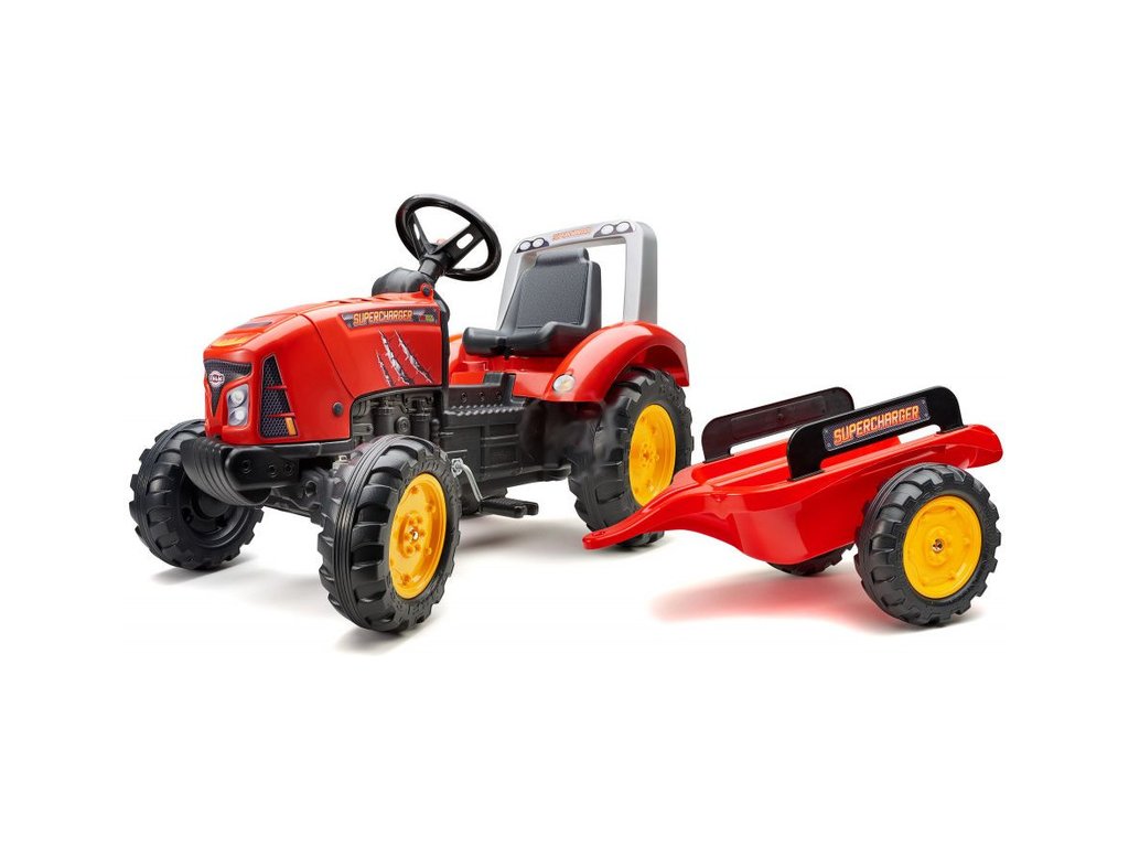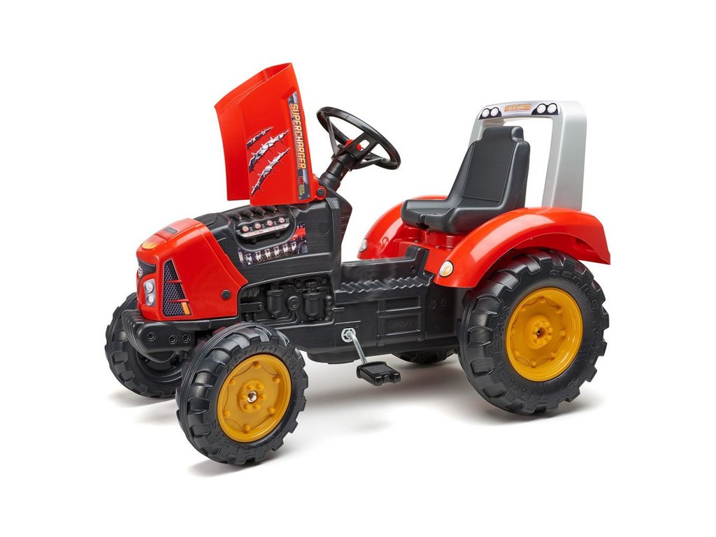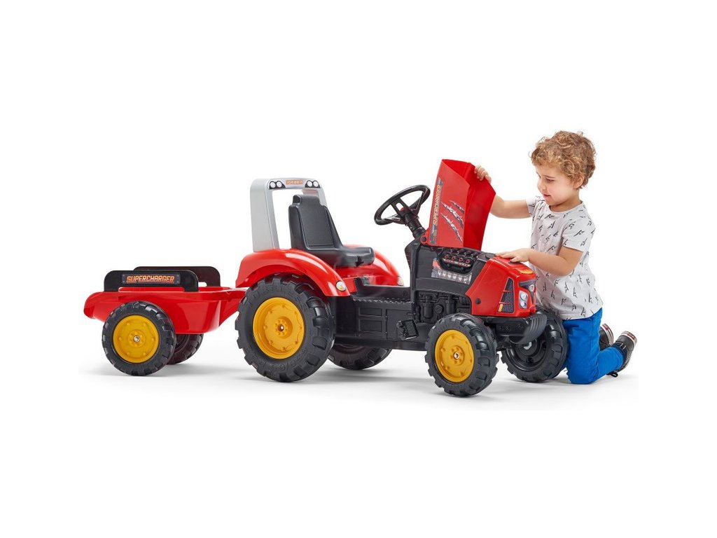 FALK - Šlapací traktor Supercharger červený s úžasným, funkčním klaksonem na volantu a výklopnou kapotou. Výborně zpracovaný dětský šlapací traktor navržený pro nejmenší děti od 3 do 7 let.