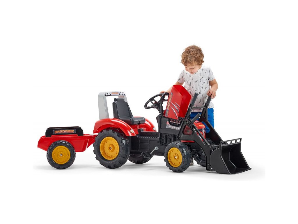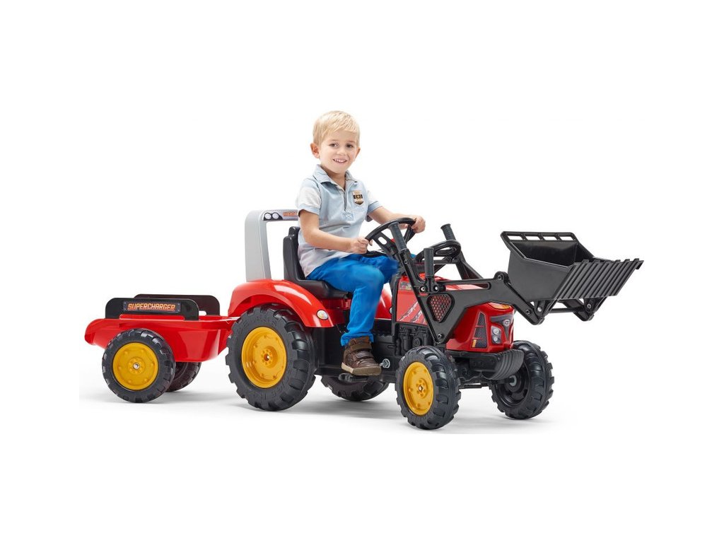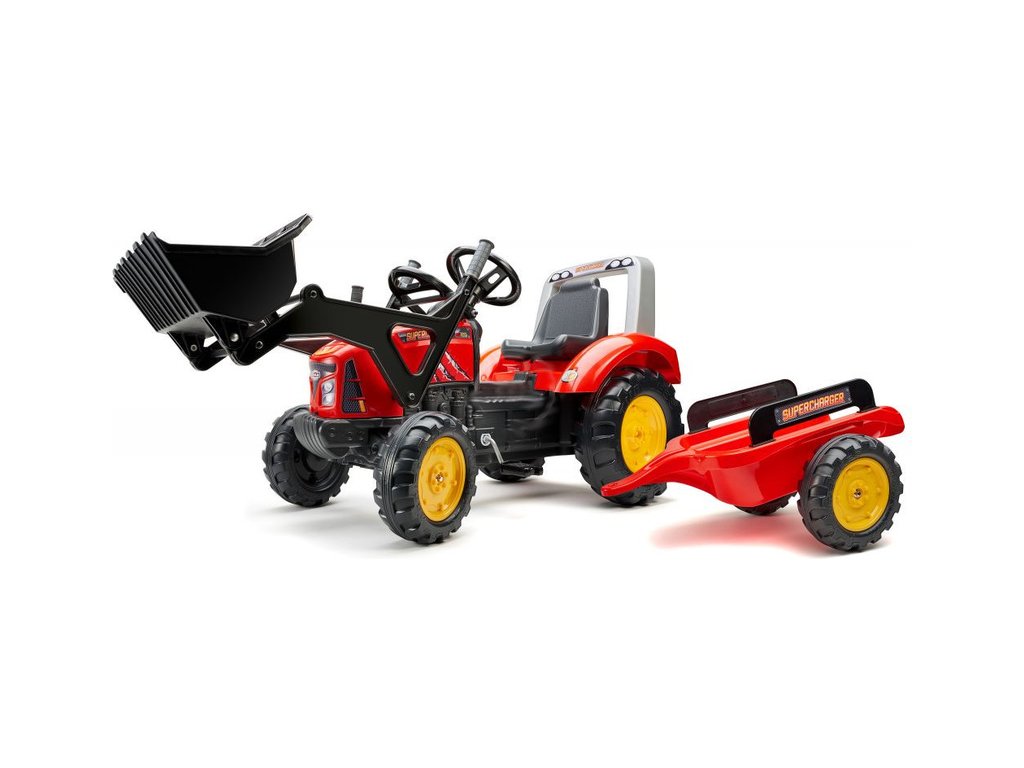 FALK - Šlapací traktor Supercharger s nakladačem a vlečkou červený