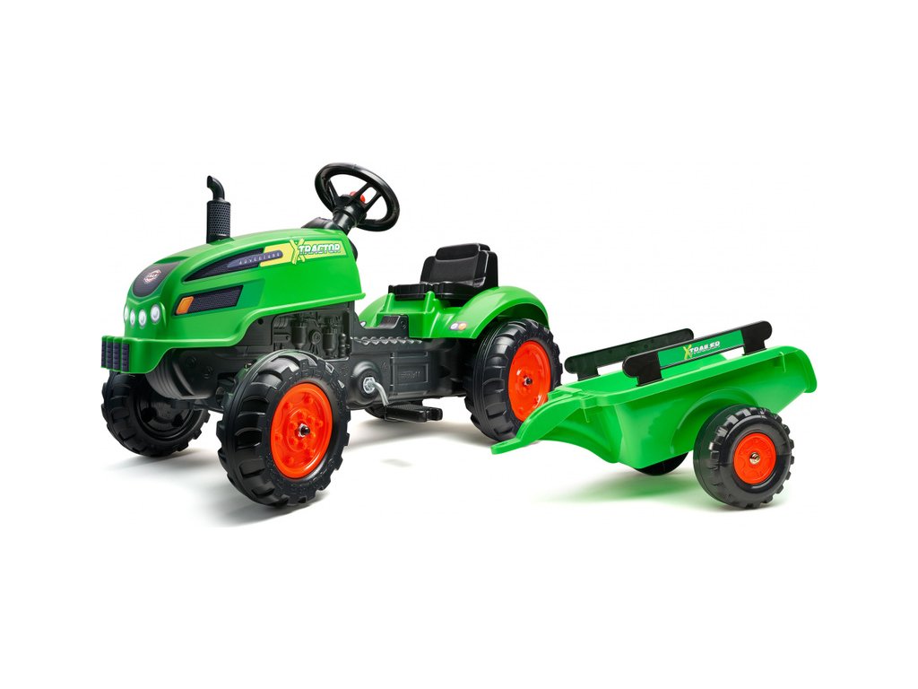 FALK - Šlapací traktor X-Tractor s vlečkou zelený