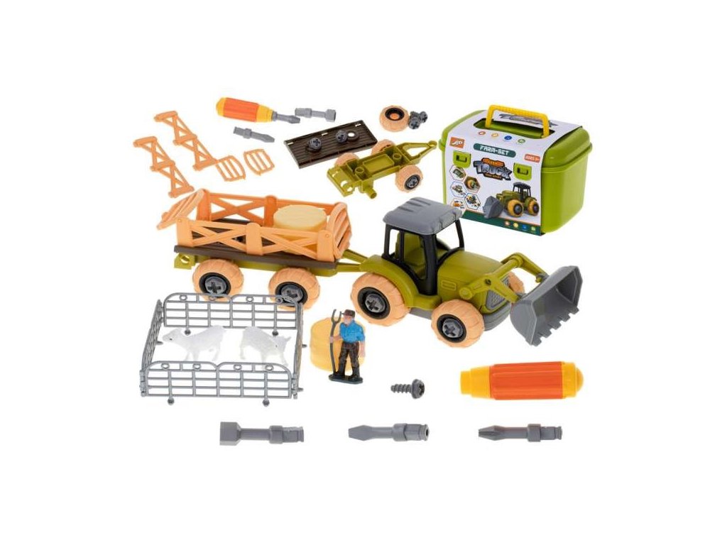 Miluje Vaše dítě čas strávený na venkově? Nebo se možná zajímá o práci zemědělců? Pokud ano, tato hračka je pro něj jako stvořená! Krabička plná příslušenství, které potřebuje každý farmář. Několik typů vozidel, zvířat, plodin a jiného farmářského příslušenství, které si dítě může samo uspořádat podle vlastních preferencí. Ale to není všechno! Souprava obsahuje i praktický plastový šroubovák se kterým již poškozené kolo traktoru při práci na poli nebude představovat absolutně žádný problém. Se šroubovákem bude oprava nebo výměna bezproblémová. Hra se šroubovákem poskytuje skvělou zábavu - všechna vozidla lze rozebrat a znovu poskládat. Ale kromě aspektu zábavy sada dokonale ovlivní správný pohybový vývoj dítěte a rozvoj koordinace oko-ruka. Sada bude rozvíjet představivost a stimulovat kreativní myšlení. Rozmanitost doplňků umožní dítěti hrát si ve společnosti - s kamarády, sourozenci či rodiči. Každý je na farmě vítán! Všechny prvky soupravy jsou zabaleny v plastovém obalu, který usnadní uložení všeho na jednom místě. Nádoba je navíc vybavena praktickou rukojetí, která výrazně usnadní přenášení hračky na jakékoli místo. Sada je ideální jako dárek pro všechny fanoušky traktorů a zemědělských zvířat.