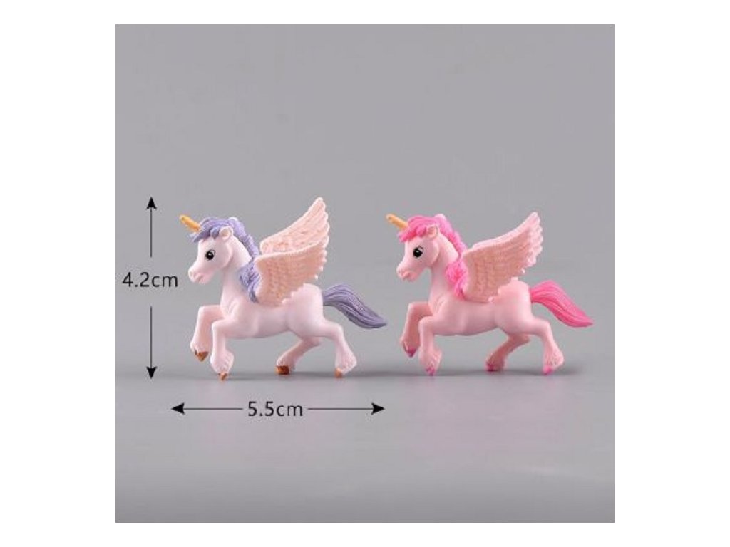 Figurka na dort – růžový a fialový jednorožec s křídly