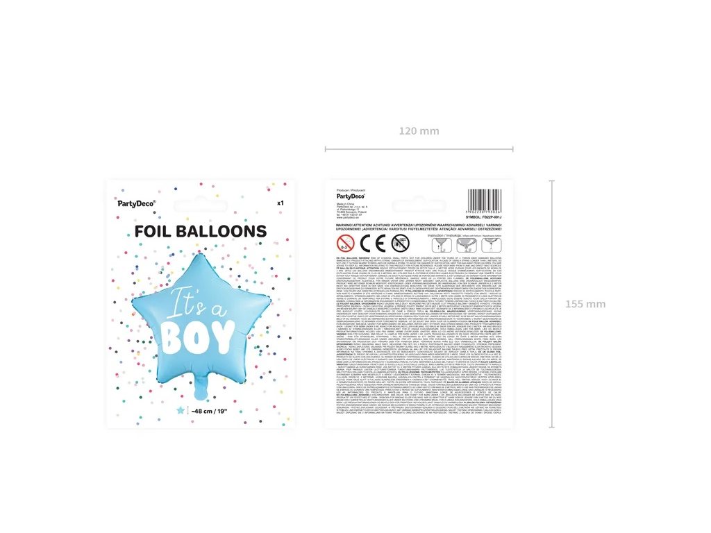 Fóliový balónek s hvězdou - "It's a boy" 48 cm, světle modrý.