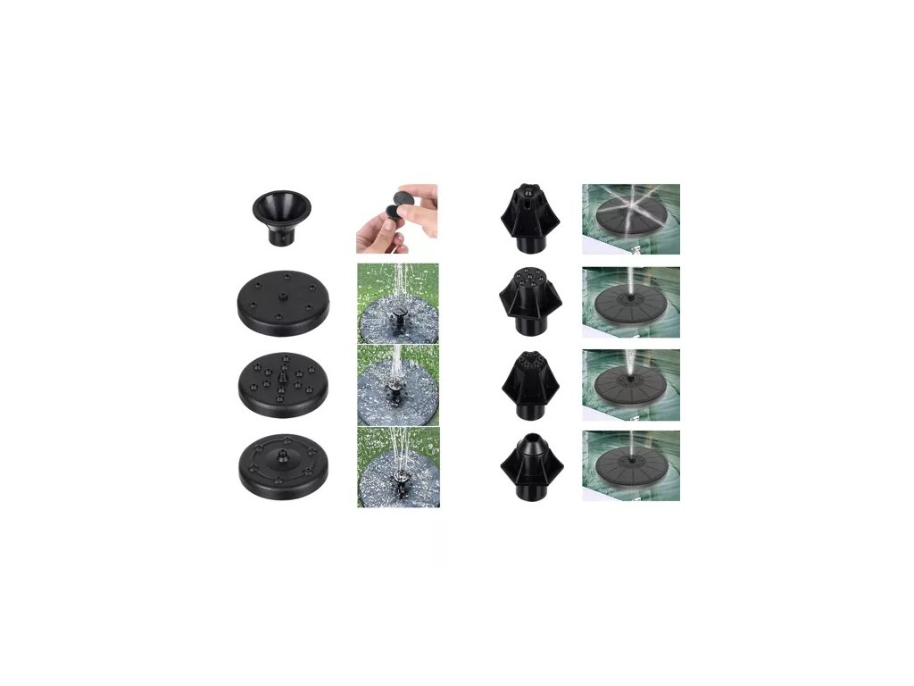 - Fontána má 7 vyměnitelných koncovek pumpy, což umožňuje zvolit tvar vody vypouštěné směrem nahoru. Tvar fontány tedy můžete měnit podle svých preferencí .