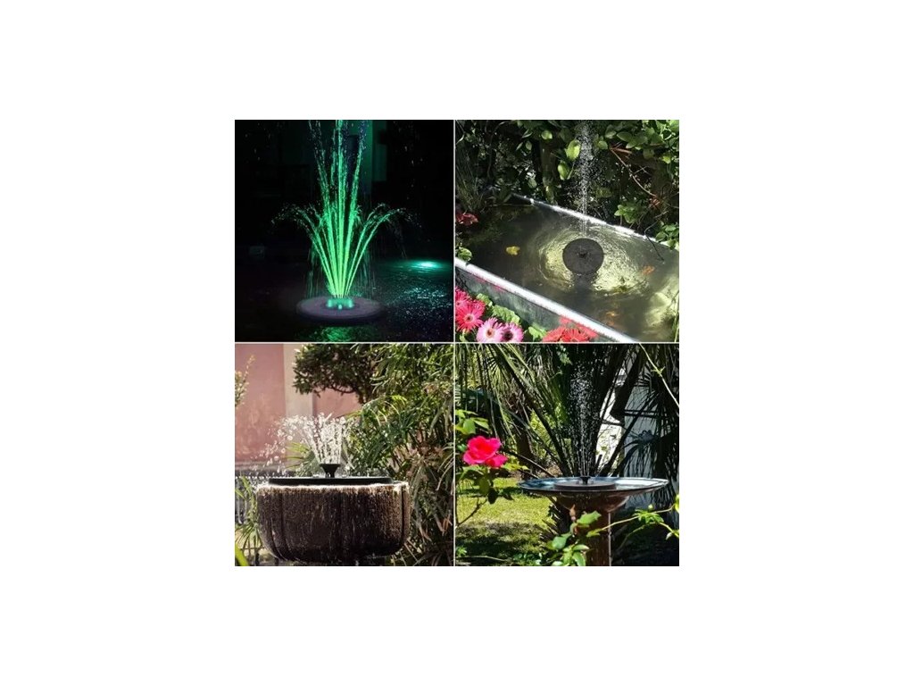 Zkrášlete si zahradu, terasu, balkon, domácí bazén a zaposlouchejte se do jemného zvuku vody, která nejen přinese útěchu, ale bude i nádhernou dekorací. Postavte si vlastní solární fontánu, kdekoli budete chtít, která díky účinnému solárnímu panelu nepotřebuje externí napájení. Solární fontána je určena pro malá jezírka a jiné umělé vodní nádrže.