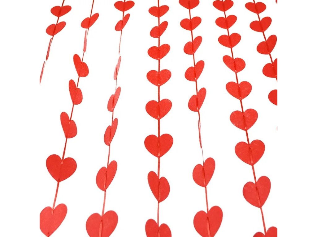 Girlanda netkaná textilie (červené srdce)