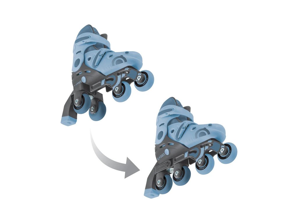 Kolečkové brusle pro děti s kombinací zábavy a učení. Jsou vybaveny inovativním otočným modulem zadních koleček, který vám umožňuje snadno přepínat mezi dvěma režimy: režimem učení a režimem inline. Zadní modul jednoduše otočíte o 90°, bez použití nářadí.