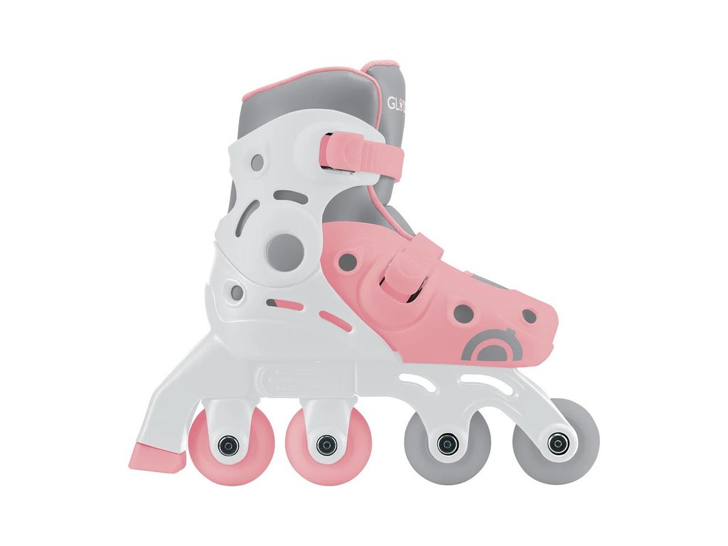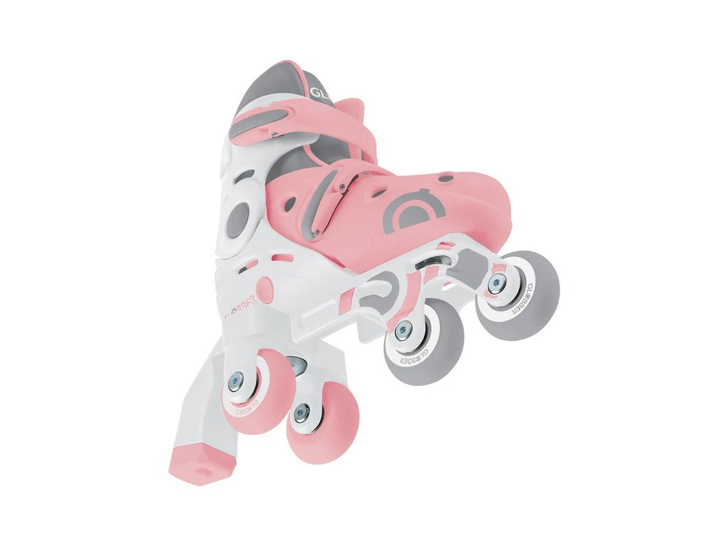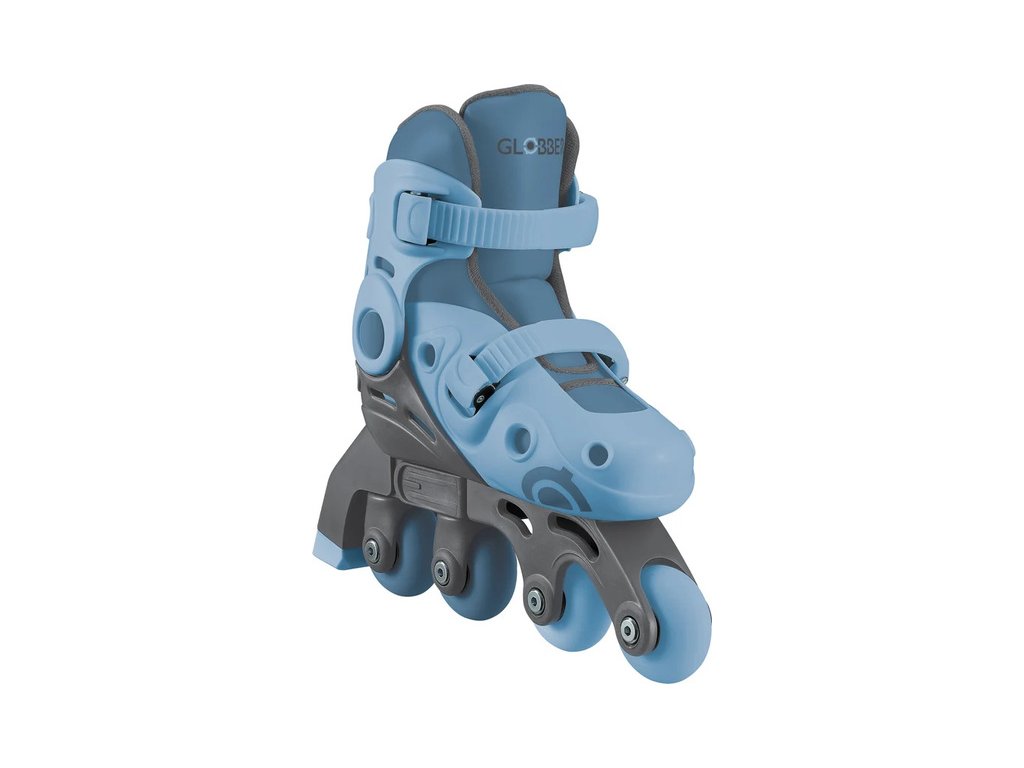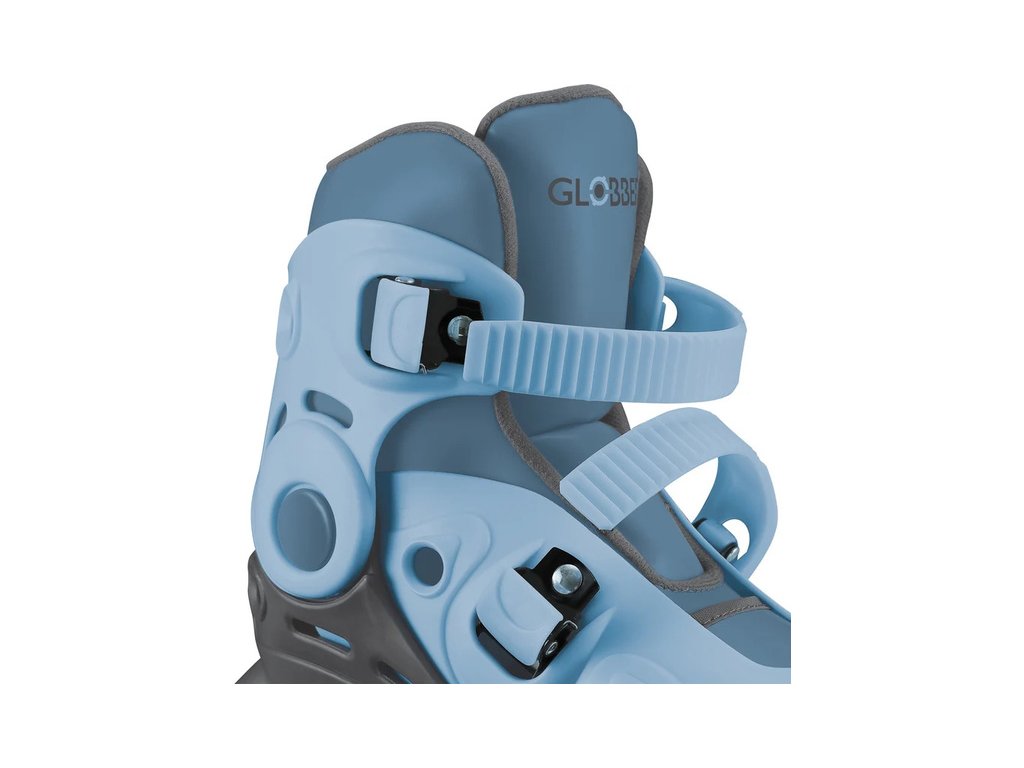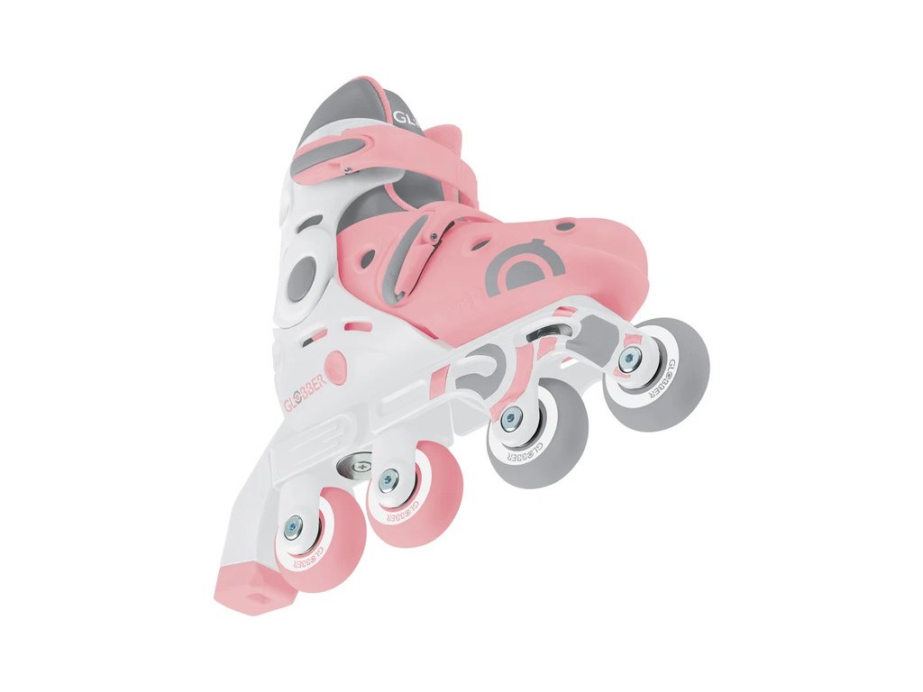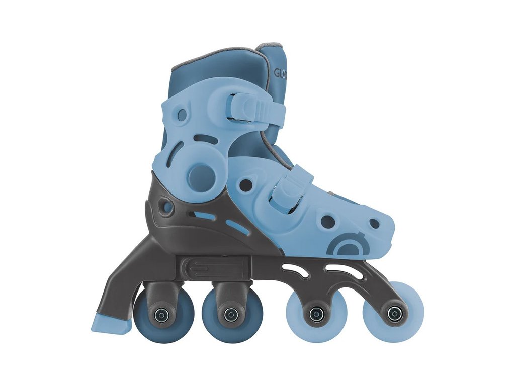 Globber - Dětské kolečkové brusle 2v1, vhodné jako první brusle na učení, díky možnosti jednoduchého otočení zadních koleček, které můžou být vedle sebe pro vyšší stabilitu. Nastavitelné délka boty EU 30-33. Kolečka z PU ø54mm (šířka 24mm). Kvalitní ložiska ABEC 5. Zadní TPR brzda. Přezkové zapínaní.