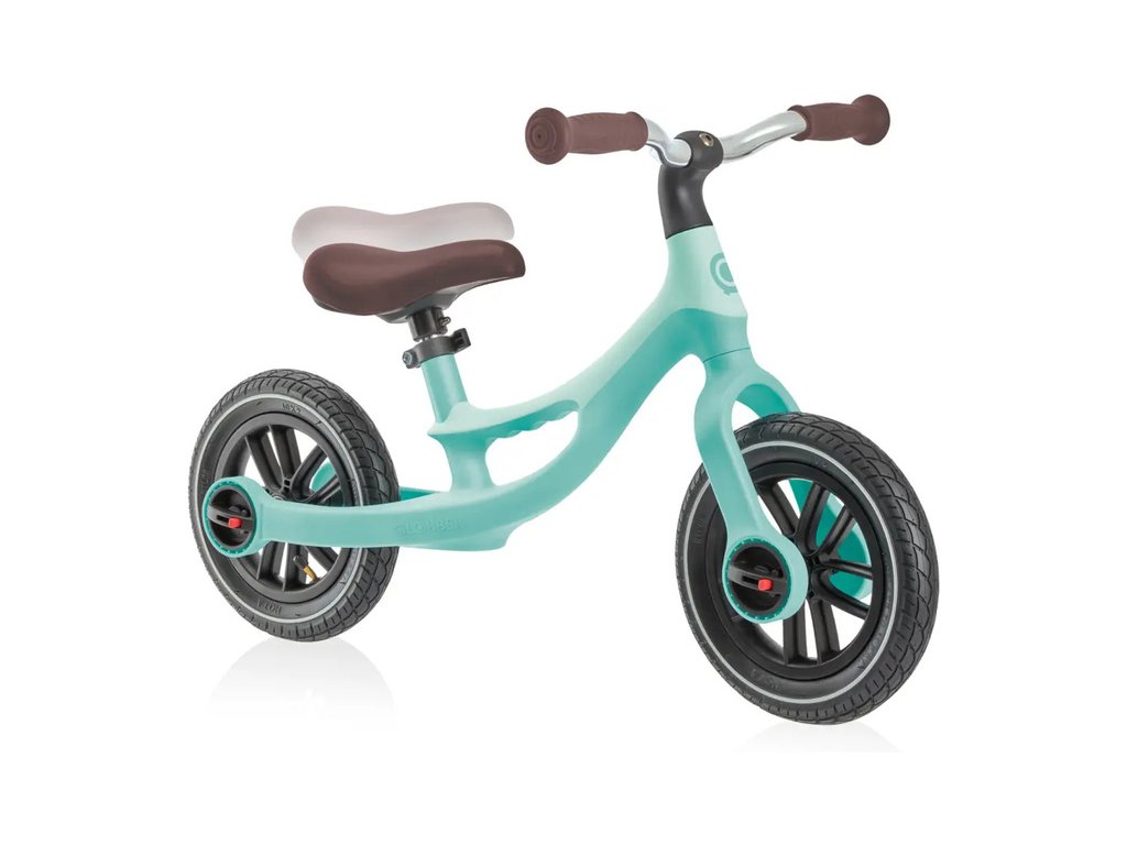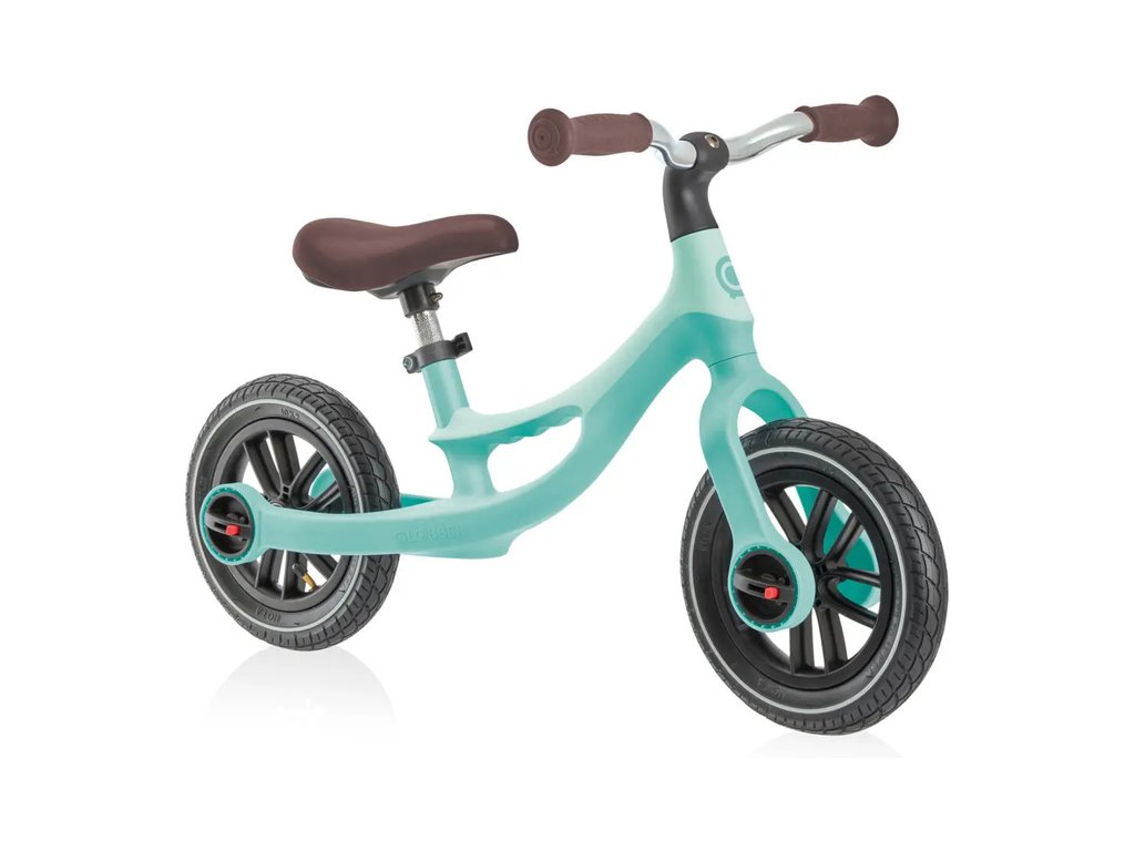 Dětské odrážedlo Globber Go Bike Elite Air pro naučení jízdy a rovnováhy. Pohodlné vzduchem plněné pneumatiky, integrovaná rukojeť pro přenášení, nastavitelná výška sedla. Pohodlné sedlo a měkké rukojeti. Vhodné od 3 do 6 let.