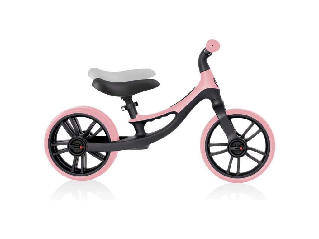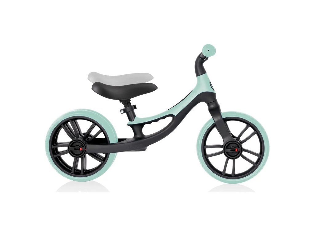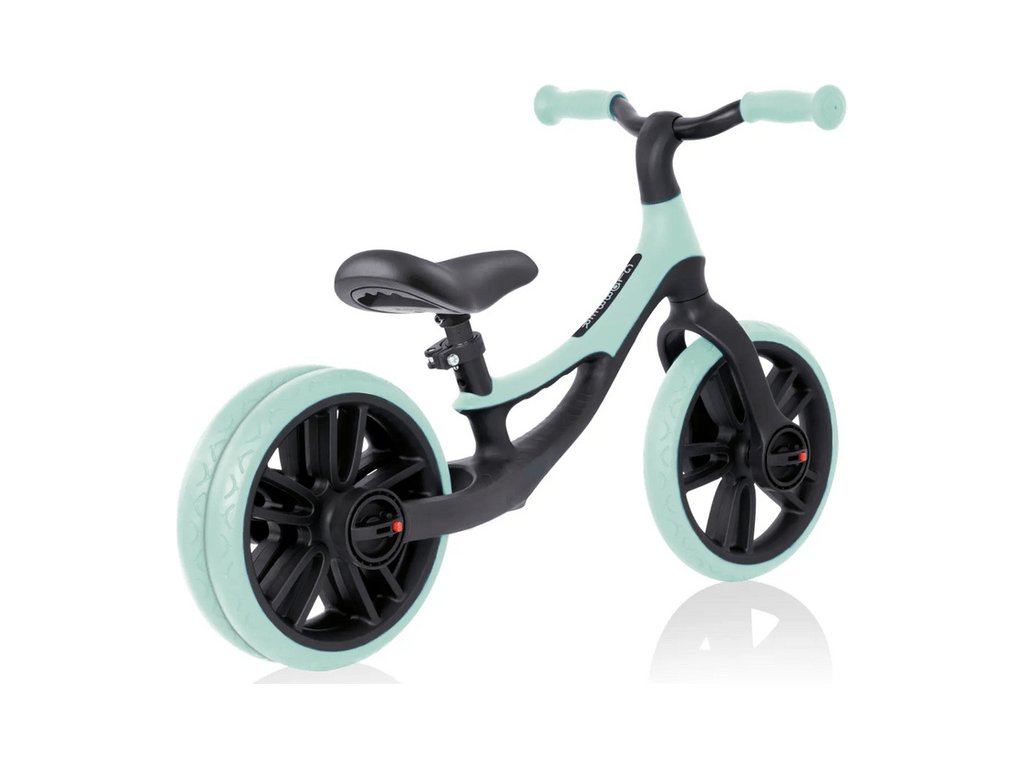 Dětské odrážedlo Globber Go Bike Elite Duo pro naučení jízdy a rovnováhy. Dvojité zadní kolo pro stabilitu, gumová kolečka TPE, integrovaná rukojeť pro přenášení, nastavitelná výška sedla. Pohodlné sedlo a měkké rukojeti. Vhodné od 2 do 5 let.
