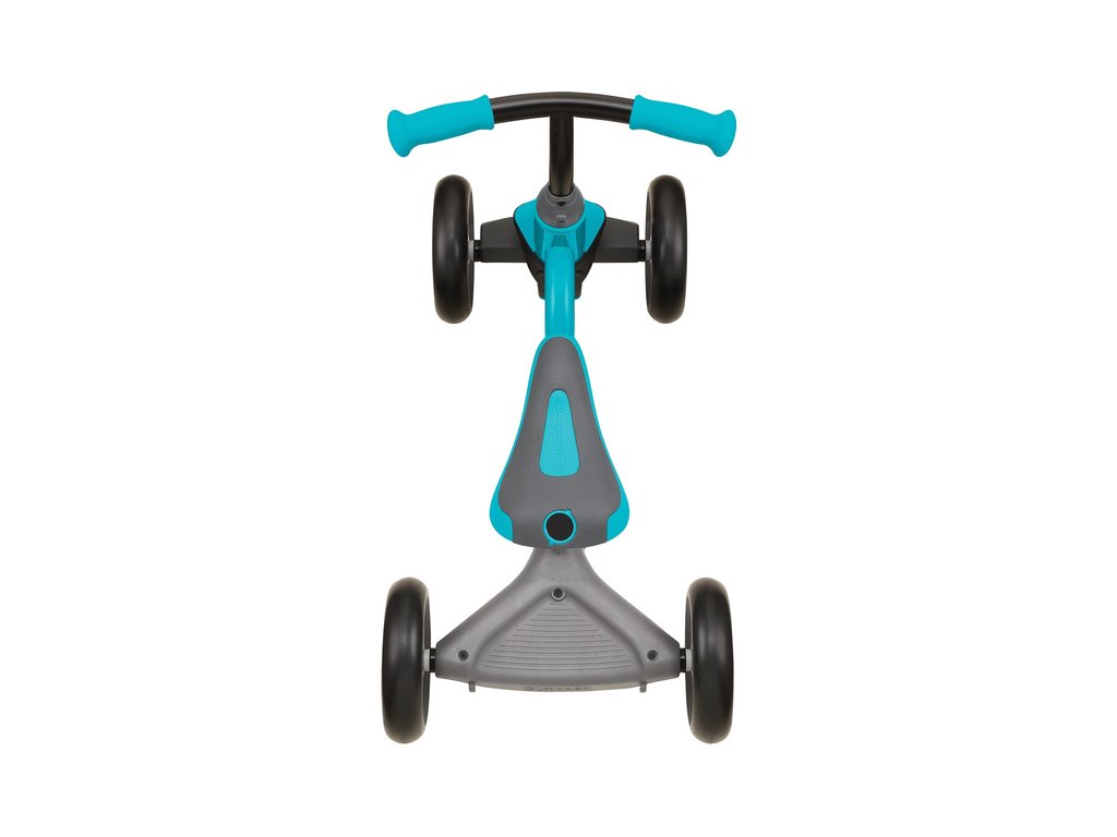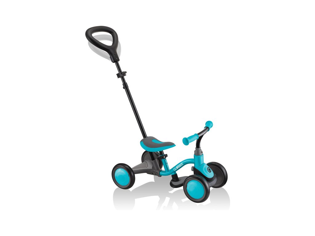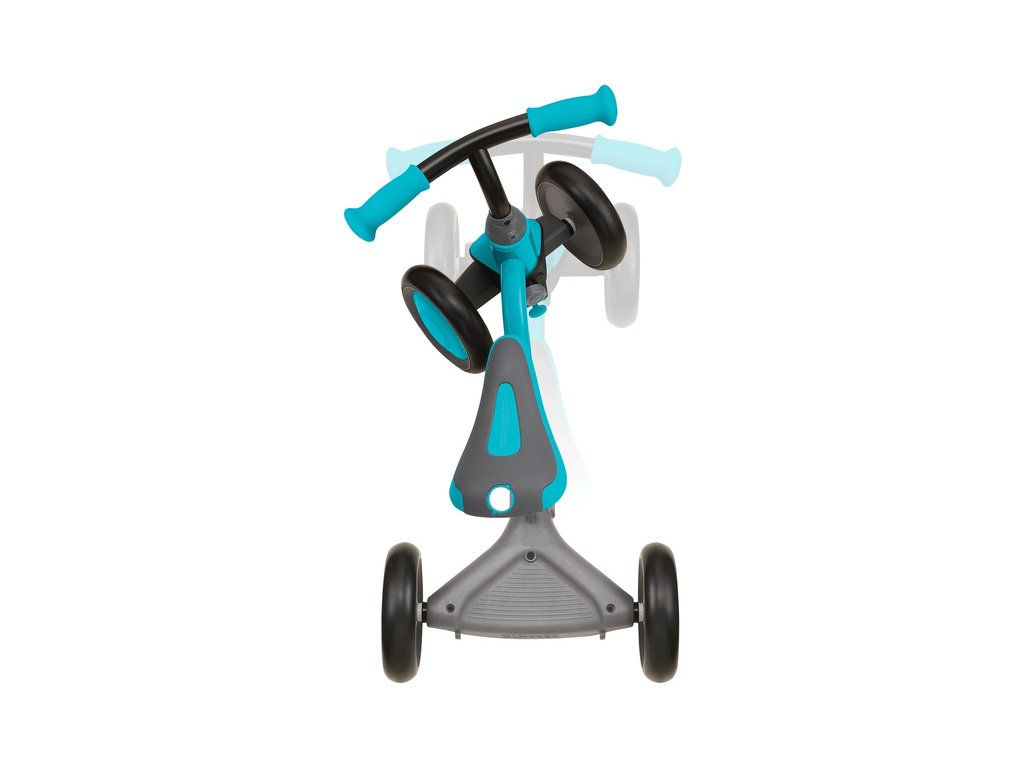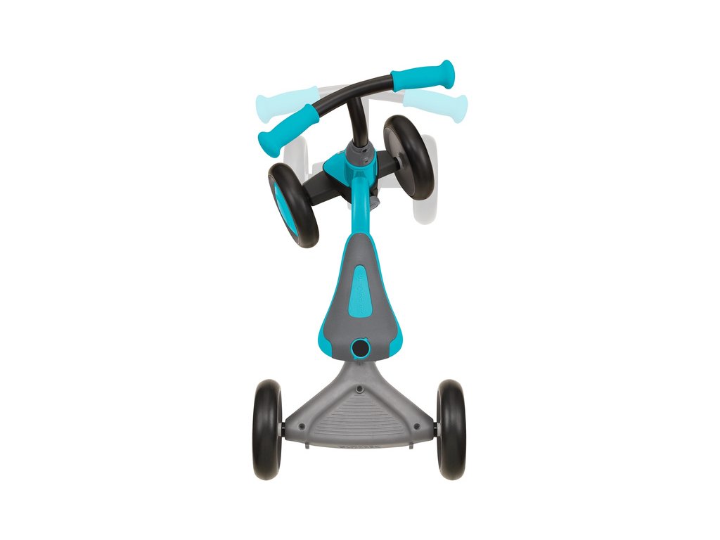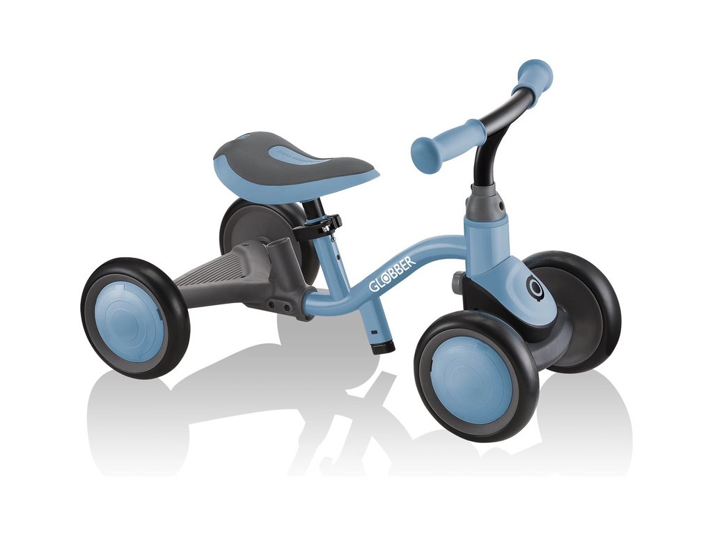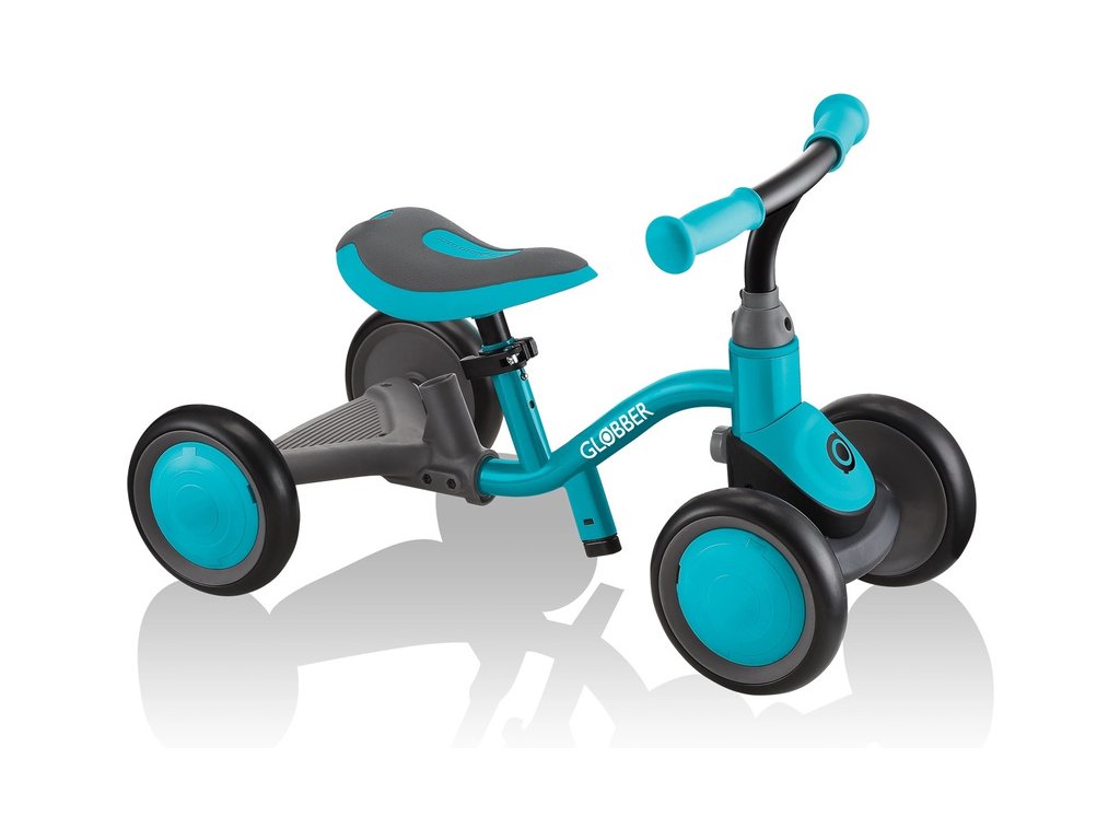 První dětské odrážedlo Globber Learning Bike 3v1, bude dítě provázet od prvních krůčku, s odolnou konstrukcí, 4 funkcemi zatáčení, nastavitelným sedátkem, pevnými koly z EVA, a naklápění zadního kola pro intuitivní jízdu. Vhodné od 12 měsíců do 3 let. Deluxe - s taškou, držákem na pití a stříškou.