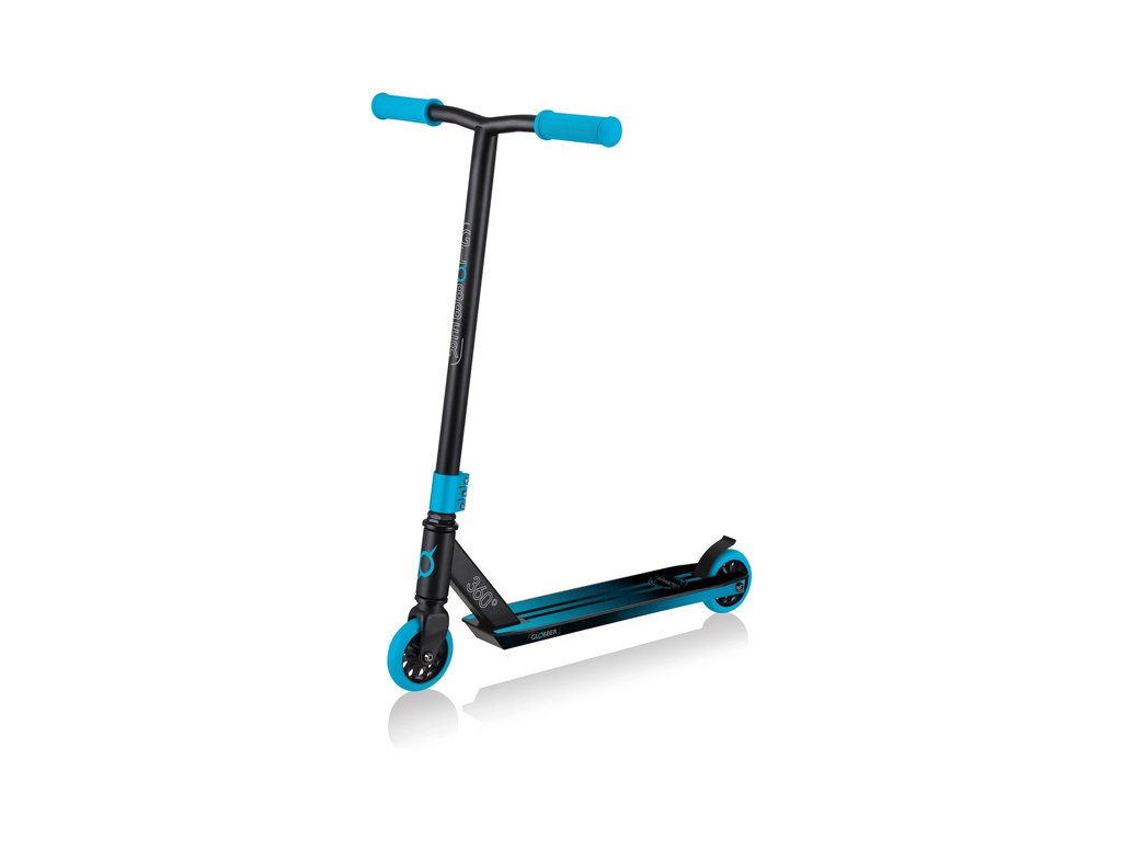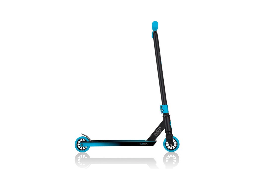 Koloběžka Globber - GS 360, pro děti od 6 let a teenagery, kteří se kromě jízdy chtějí naučit freestylové triky. Robustní přední vidlice vyztužená ocelí, kvalitní kolečka 100 mm s tvrdostí 88A PU, hliníkové jádro a špičková ložiska 680ZZ ABEC 7, zajistí maximální odolnost.