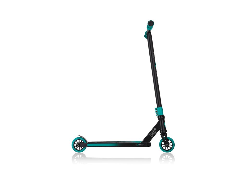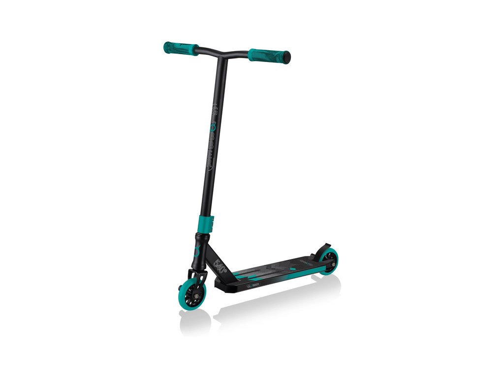 Koloběžka Globber - GS 540, pro děti od 8 let, teenagery a pokročilé, kteří se kromě jízdy chtějí naučit freestylové triky. Přední vidlice vyztužená ocelí, trojitá spona řídítek, kvalitní kolečka 100 mm s tvrdostí 88A PU, hliníkové jádro a špičková ložiska 680ZZ ABEC 7, Stupačky.