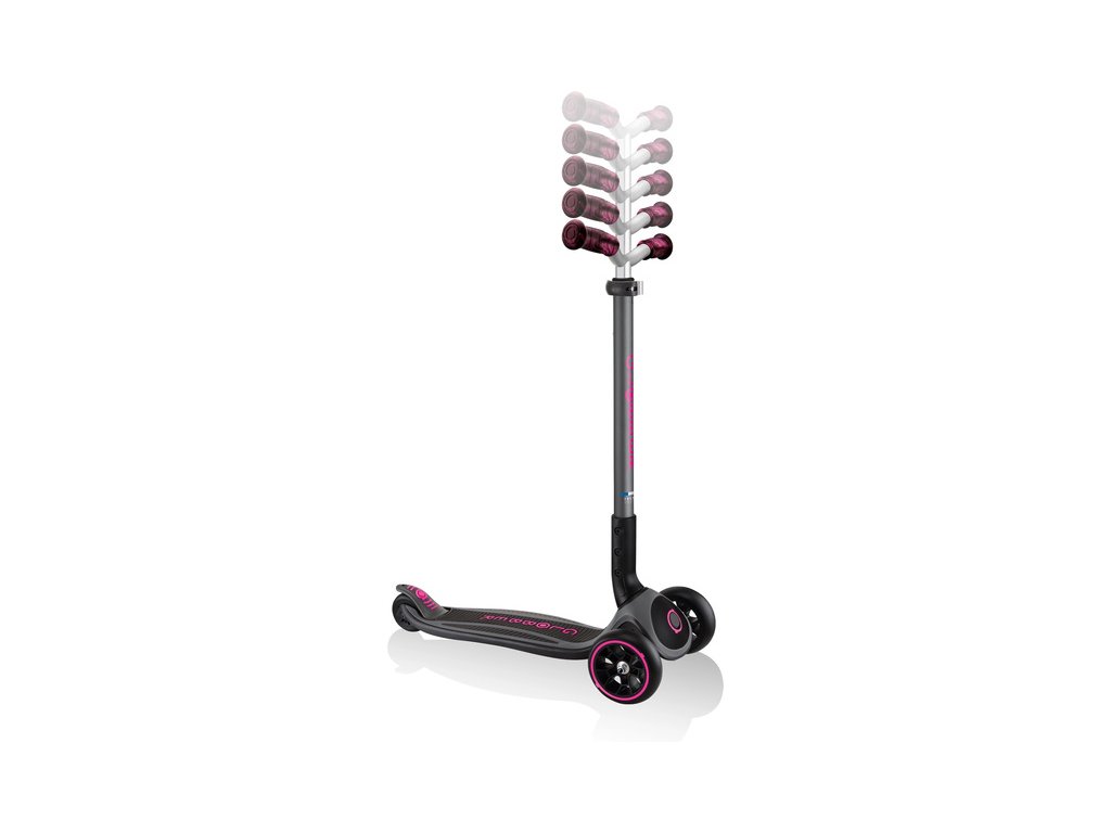 Výškově nastavitelná řídítka ve pěti polohách umožňují pohodlné nastavení do správné ergonomické polohy, přesně podle výšky a potřeb dítěte. Zároveň nastavitelná řídítka umožňují aby koloběžka rostla s dítětem.