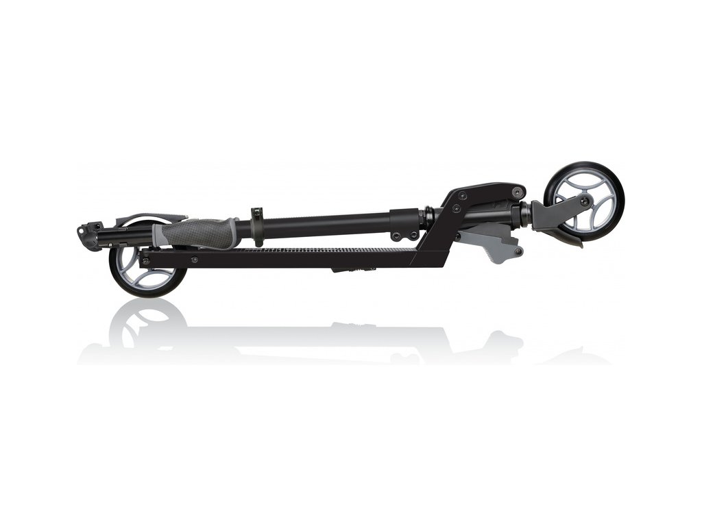 Koloběžka je vybavena unikátním skládacím systémem. Patentovaný píst usnadní a urychlí skládání. Stačí jen "kopnout" do tlačítka a koloběžka je během jedné sekundy složena. Koloběžka se tak dostane do velmi kompaktního tvaru, složenou ji můžete snadno převážet, uskladnit nebo vést za sebou.