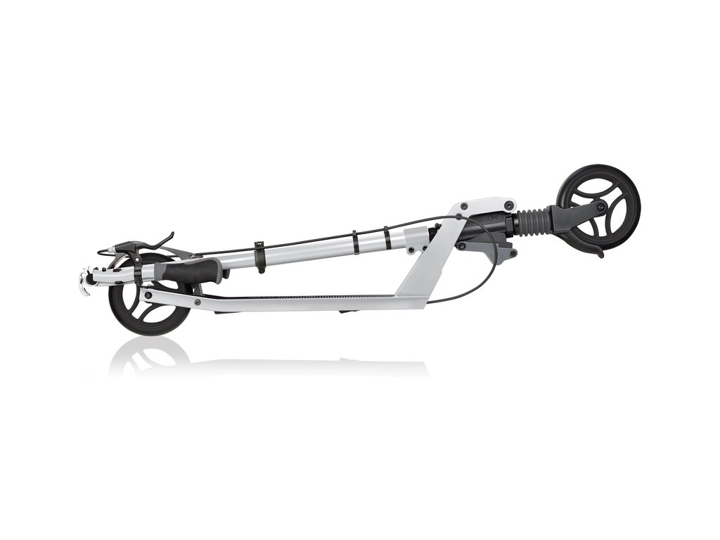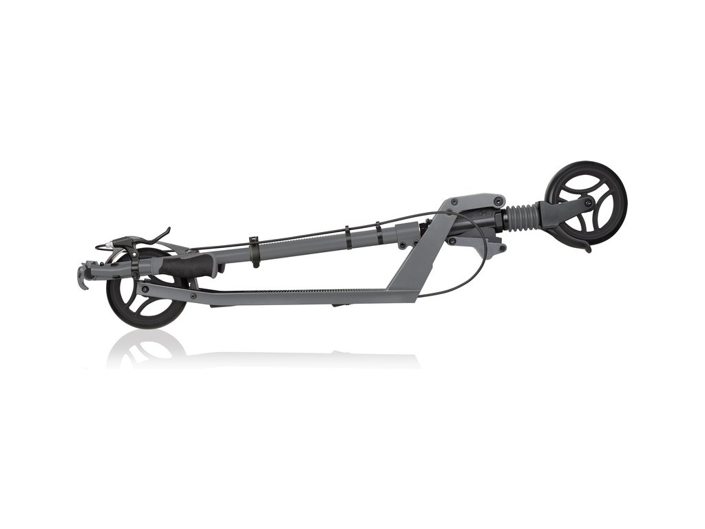Koloběžka je vybavena unikátním skládacím systémem. Patentovaný píst usnadní a urychlí skládání. Stačí jen "kopnout" do tlačítka a koloběžka je během jedné sekundy složena. Koloběžka se tak dostane do velmi kompaktního tvaru, složenou ji můžete snadno převážet, uskladnit nebo vést za sebou.
