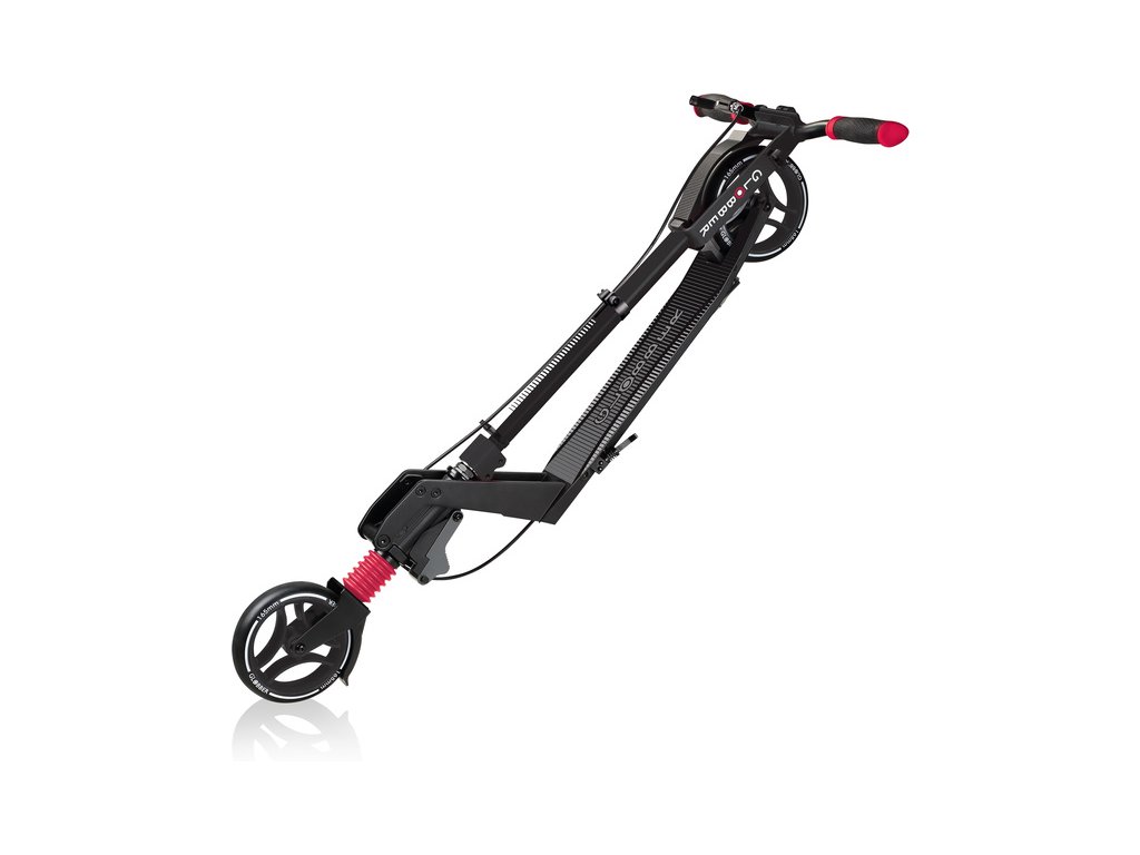 Koloběžky Globber modelové řadu ONE K patří mezi absolutní světovou elitu. Splňuje nejpřísnější kritéria kvality, pevnosti, stability, setrvačnosti a designu. Koloběžku lze díky patentovanému pístu složit během sekundy. Kola jsou vyrobená z odolného materiálu PU (polyuretan), který je mimořádně tichý a má nízký valivý odpor. Unikátní setrvačnost zaručují ložiska ABEC 7. Průměr kol 165 mm, spolu s předním odpružením, zajistí vysokou stabilitu a komfort. Při brzdění se používá klasická zadní brzda a vysoce účinná ruční brzda. Rukojeť má 3 úrovně nastavení, díky čemuž je koloběžka mimořádně kompaktní a vhodná pro široké spektrum lidí.