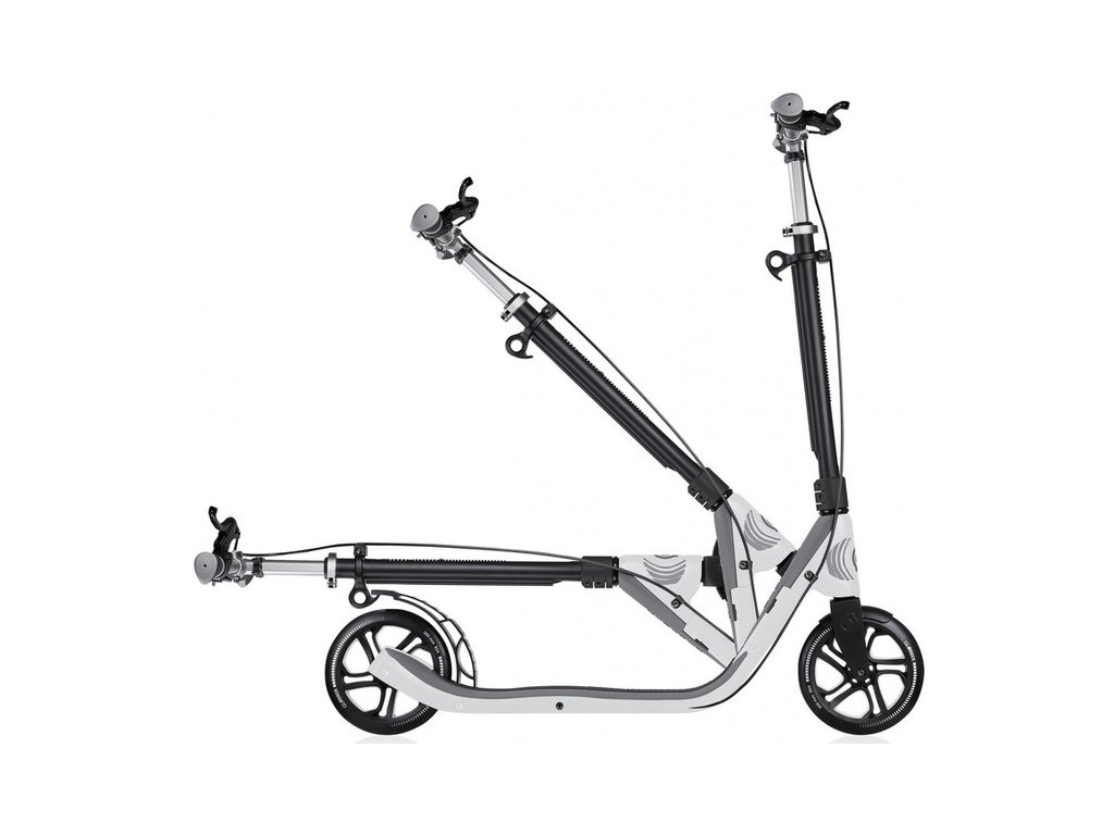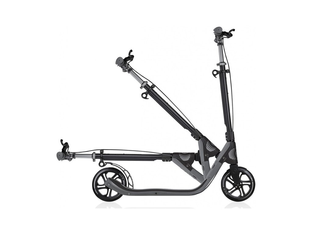 Koloběžka má speciální 1-sekundový systém složení, který je na trhu absolutně jedinečný a značka Globber ho přinesla jako první. Stačí, když potáhnete svorku na řídicí páce směrem nahoru a koloběžku sklopíte. Specialitou (mimochodem je to Globber prvek) je parkování. Stačí stisknout pojistku a koloběžka si "sedne" na nášlapnou část a koloběžka je zaparkována. Díky její všestrannosti, vhodnosti pro širokou věkovou škálu, je koloběžka NL 205 vhodným společníkem na dlouhé roky.