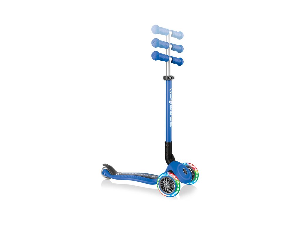 Výškově nastavitelná řídítka ve třech polohách umožňují pohodlné nastavení do správné ergonomické polohy, přesně podle výšky a potřeb dítěte. Zároveň nastavitelná řídítka umožňují aby koloběžka rostla s dítětem.
