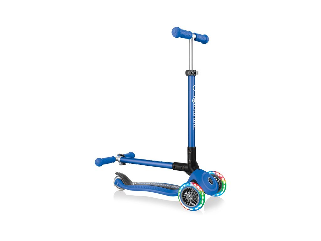 Koloběžky Primo Lights jsou vybaveny unikátními předními koly, které při jízdě blikají červenou, modrou a zelenou barvou. Diody v kolech jsou napájeny pomocí integrovaného dynama a nejsou potřeba baterie.