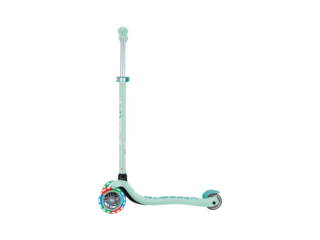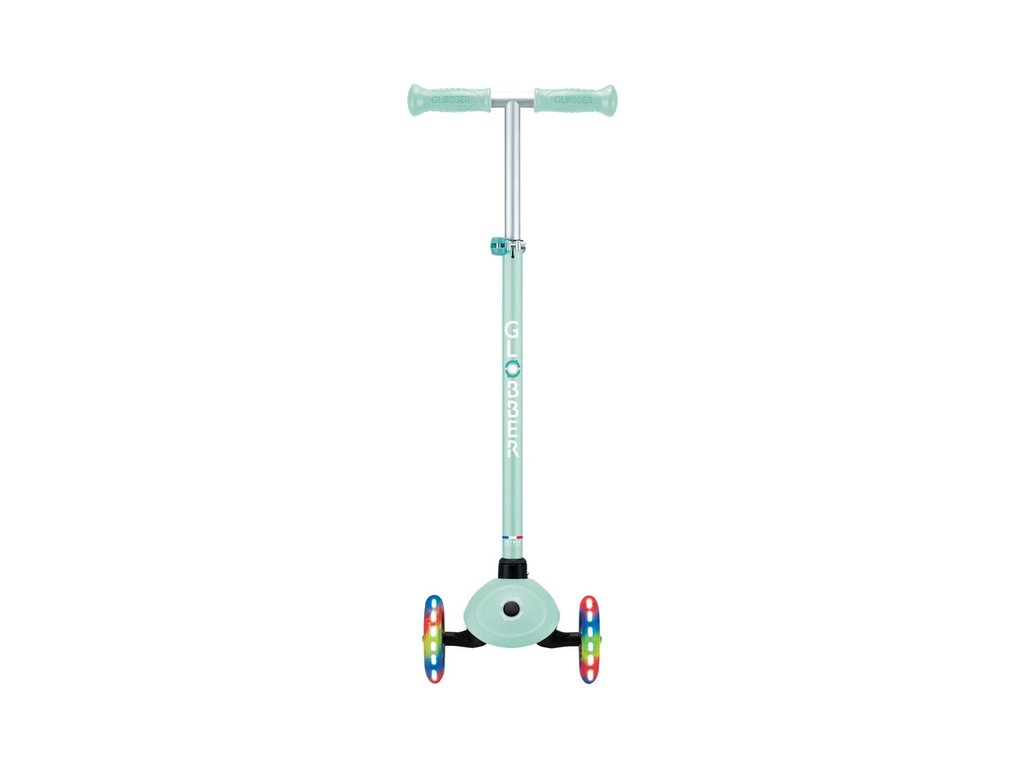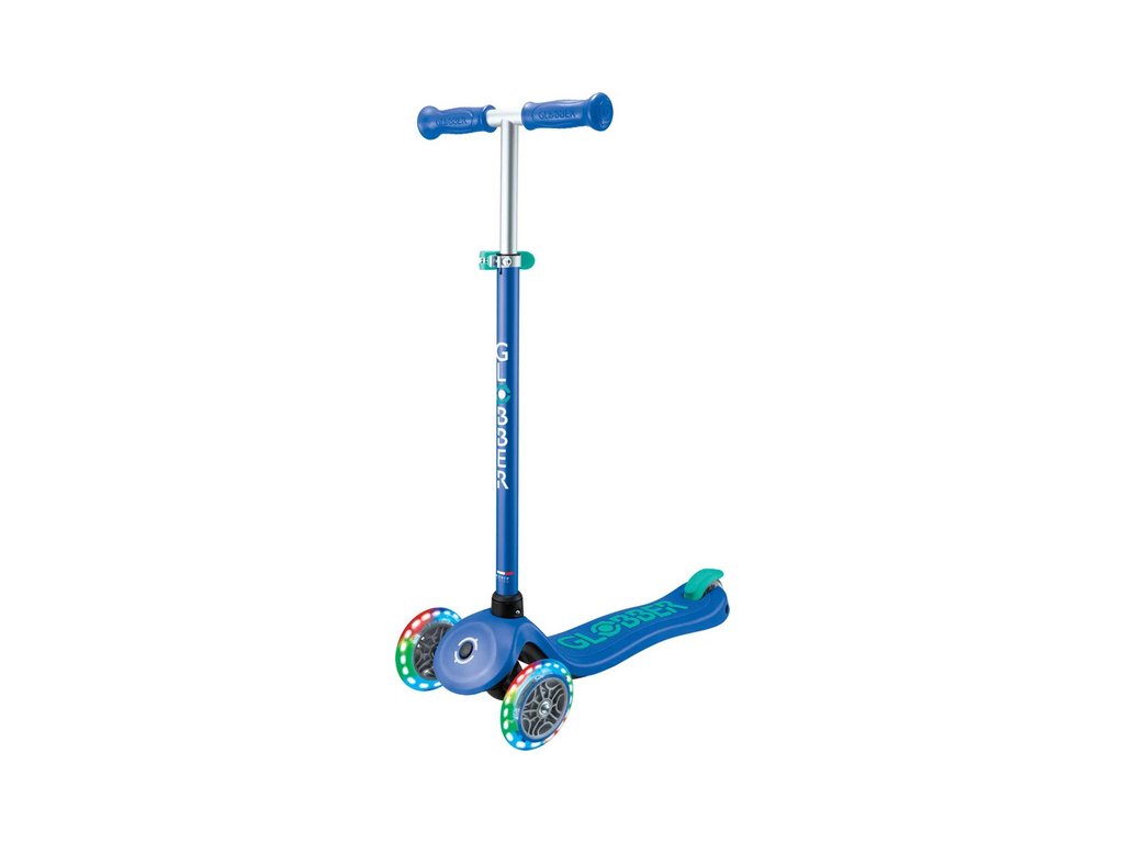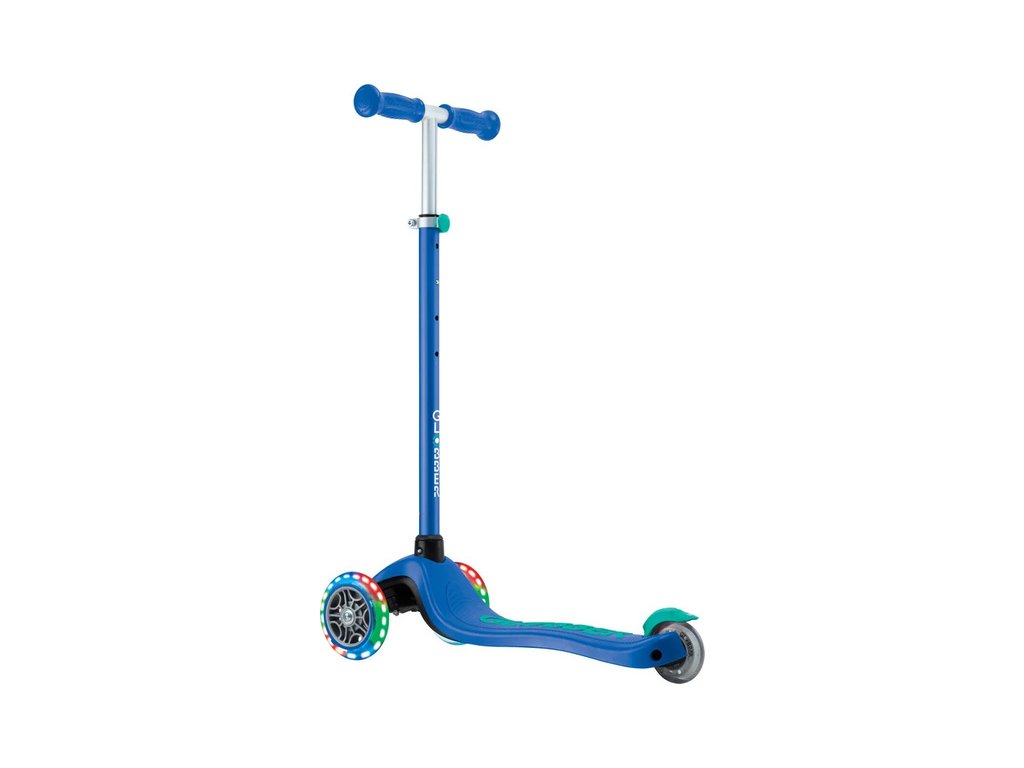 Koloběžka Primo Plus Lights V2 od firmy Globber, je určena pro děti od 3 do 9 let. Ergonomické tělo, svítící kolečka, kvalitní materiály, patentovaná technologie zatáčení. Kolečka z vysoce odolné gumy (Polyuretan), kvalitní ložiska ABEC 5.Výška řídítek až 82 cm.