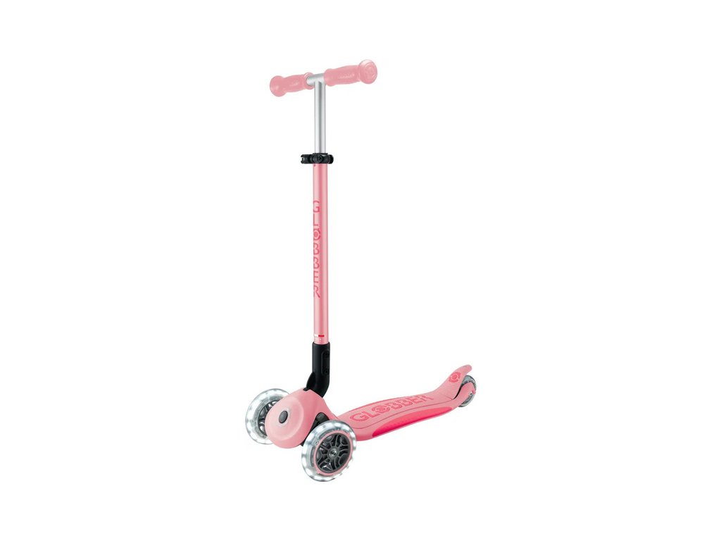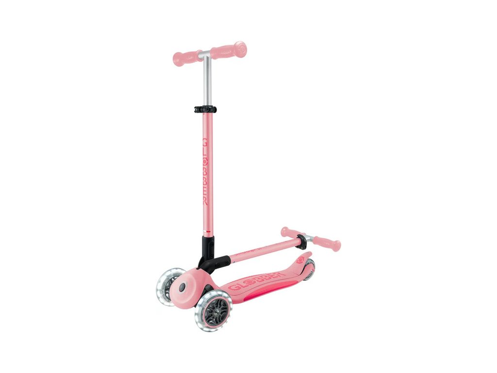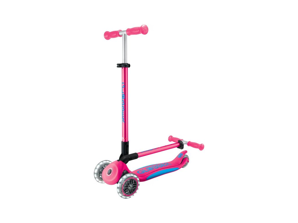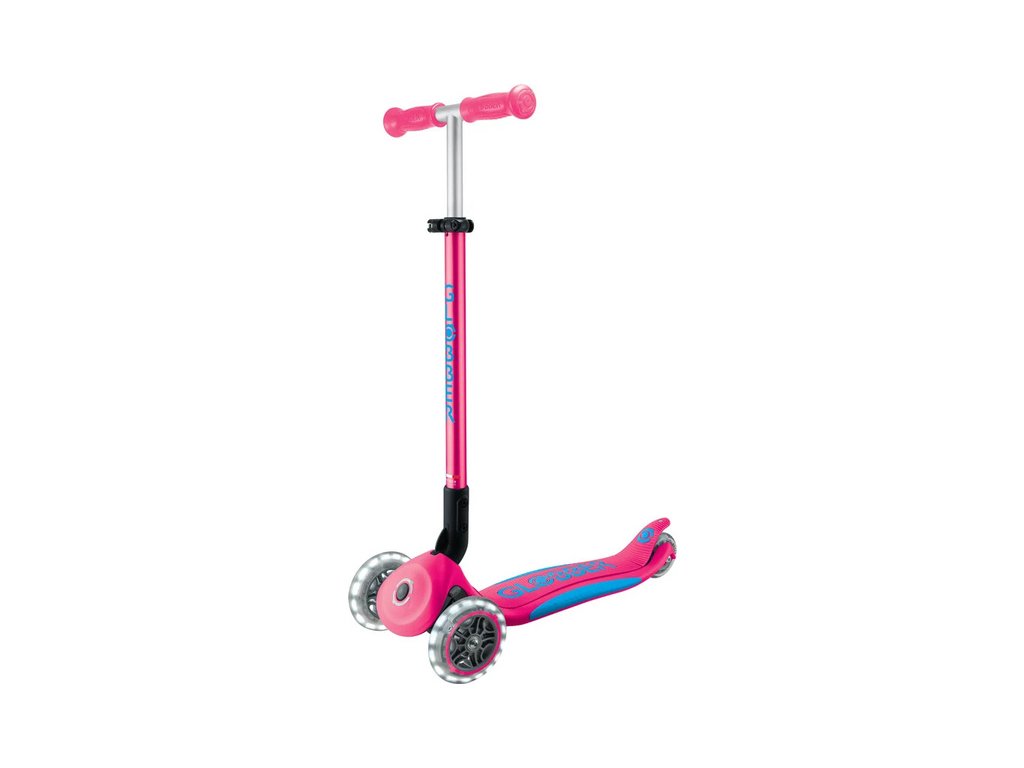 Koloběžka Primo Plus Lights V2 skládací od firmy Globber, je určena pro děti od 3 do 9 let. Ergonomické tělo, svítící kolečka, kvalitní materiály, patentovaná technologie zatáčení. Kolečka z vysoce odolné gumy (Polyuretan), kvalitní ložiska ABEC 5.Výška řídítek až 82 cm.